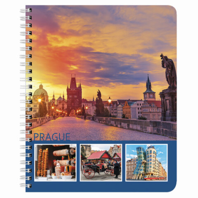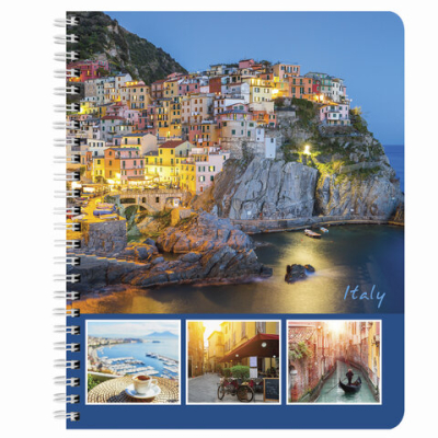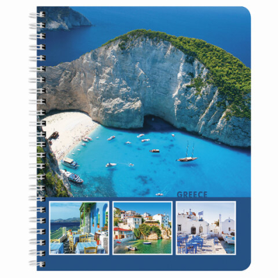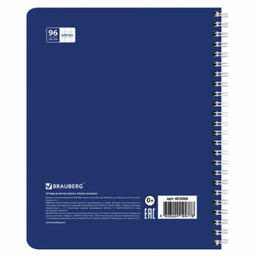 Внутренний блок содержит 96 листов офсетной бумаги плотностью 65 г/м2. Обложка изготовлена из мелованного картона. Линовка – клетка. Евроспираль надежно скрепляет листы между собой. Белизна – 100%. Формат А5.