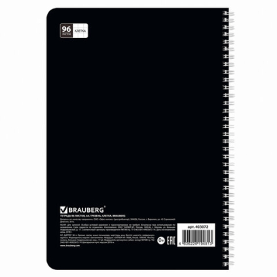 Внутренний блок содержит 96 листов офсетной бумаги плотностью 65 г/м2. Обложка изготовлена из мелованного картона. Линовка – клетка. Евроспираль надежно скрепляет листы между собой. Белизна – 100%. Формат А4.