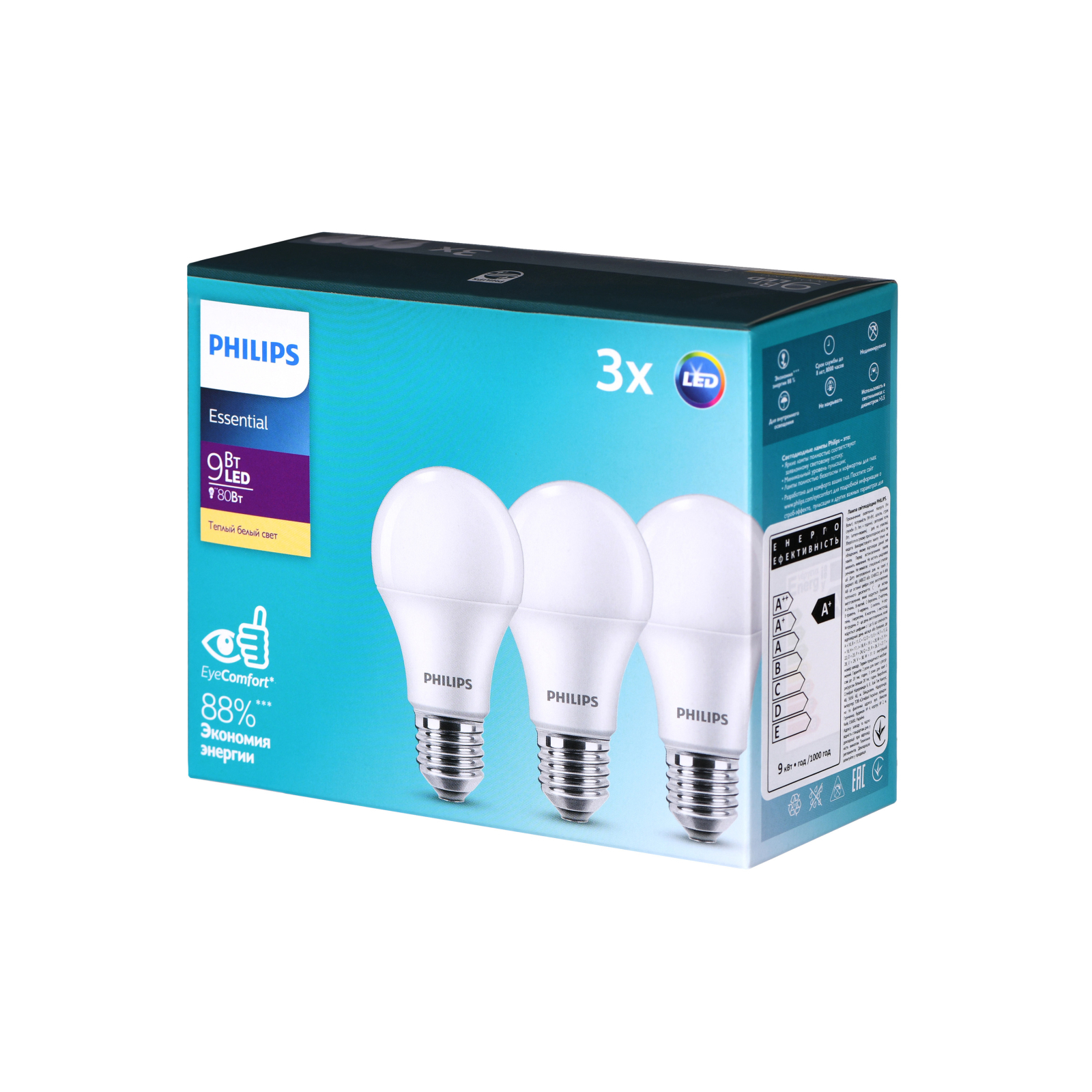 Лампочка Philips LEDBulb 9W (900lm) 3000K E27 3шт (929002299247)
