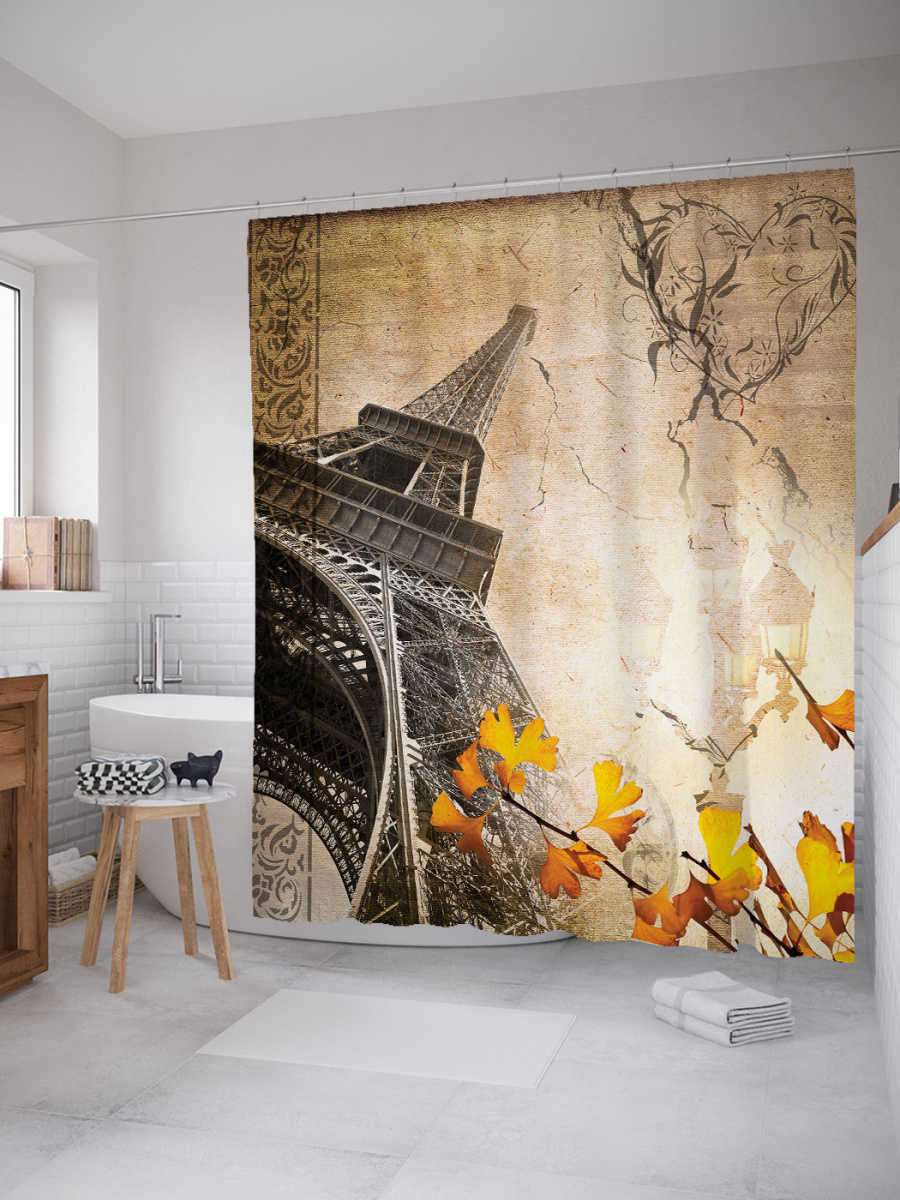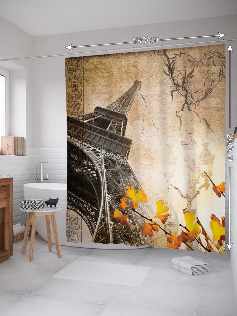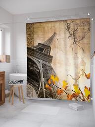 Штора (занавеска) для ванной "Париж цветет" из ткани, 180х200 см с крючками