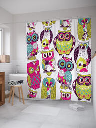 Штора (занавеска) для ванной "Гипнотические совы" из ткани, 180х200 см с крючками