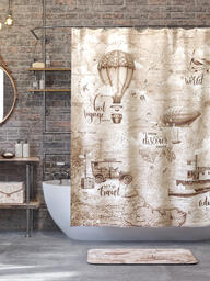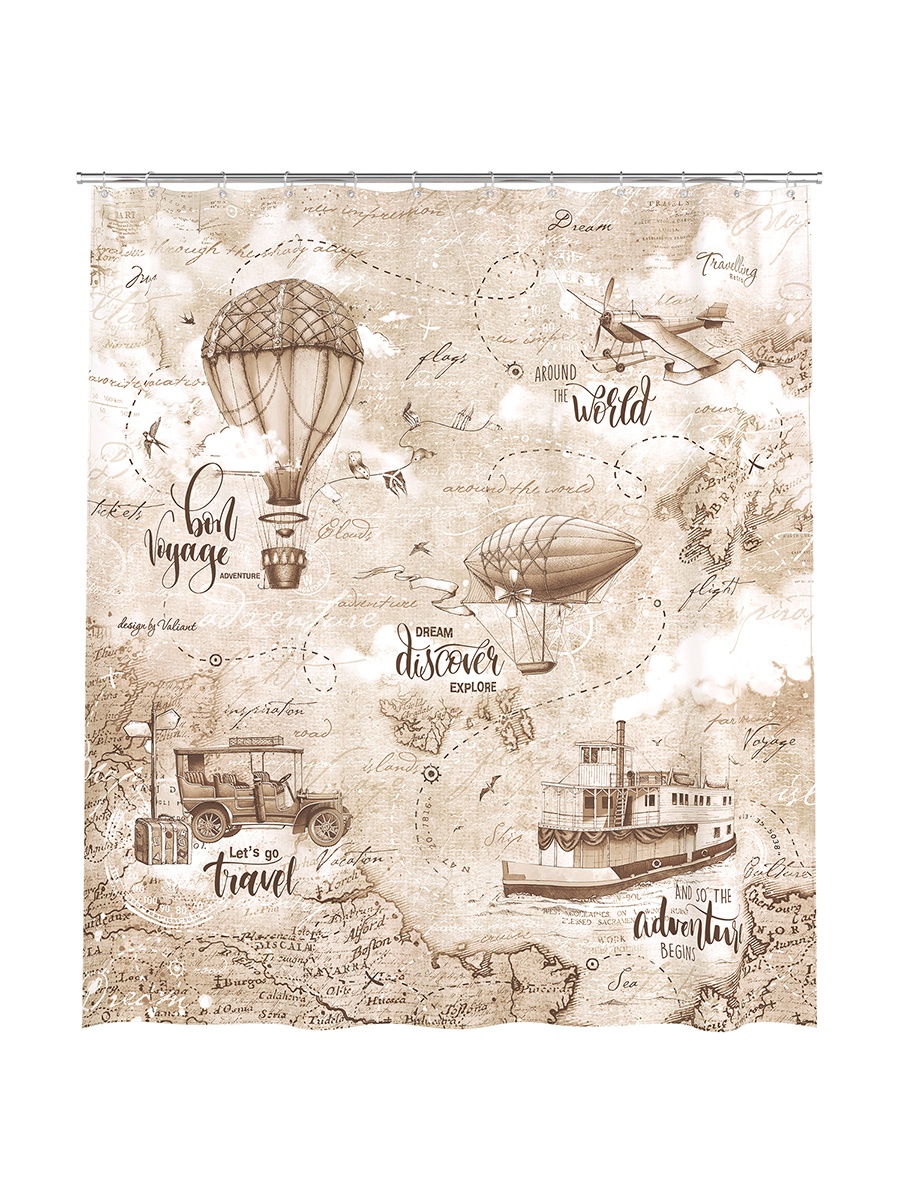 Штора для ванной комнаты VALIANT "TRAVELLING RETRO" полиэстер, 180*180 см.