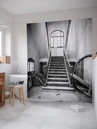 Штора (занавеска) для ванной "Ремонт необходим" из ткани, 180х200 см с крючками