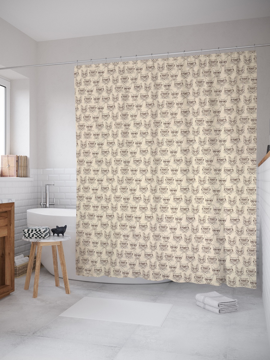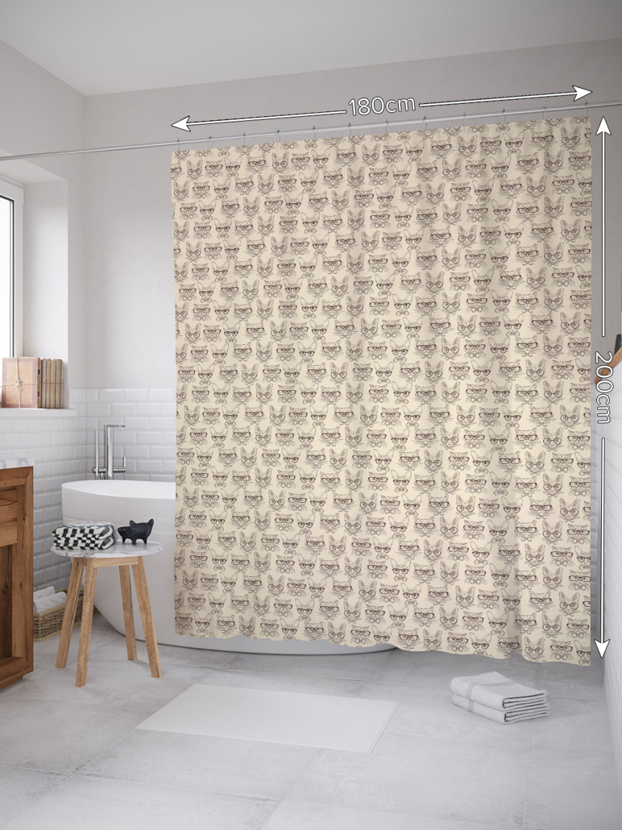 Штора (занавеска) для ванной "Кошки в очках" из ткани, 180х200 см с крючками