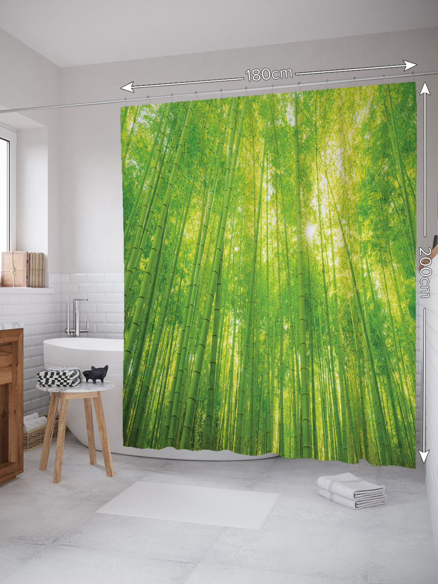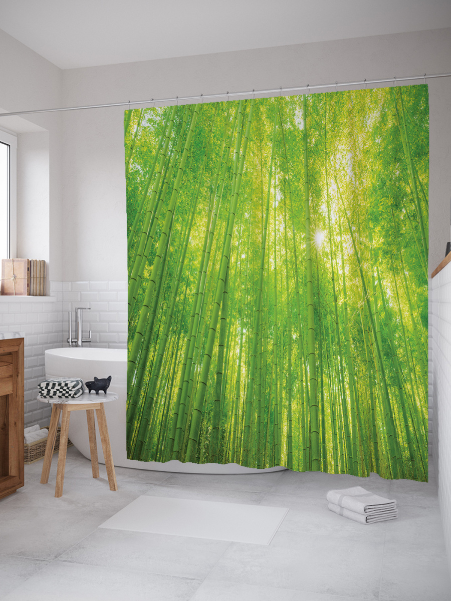 Штора (занавеска) для ванной "Бескрайний бамбуковый лес" из ткани, 180х200 см с крючками