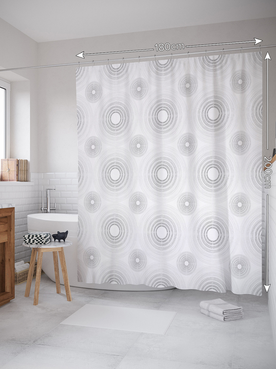 Штора (занавеска) для ванной "Солнечная симметрия" из ткани, 180х200 см с крючками