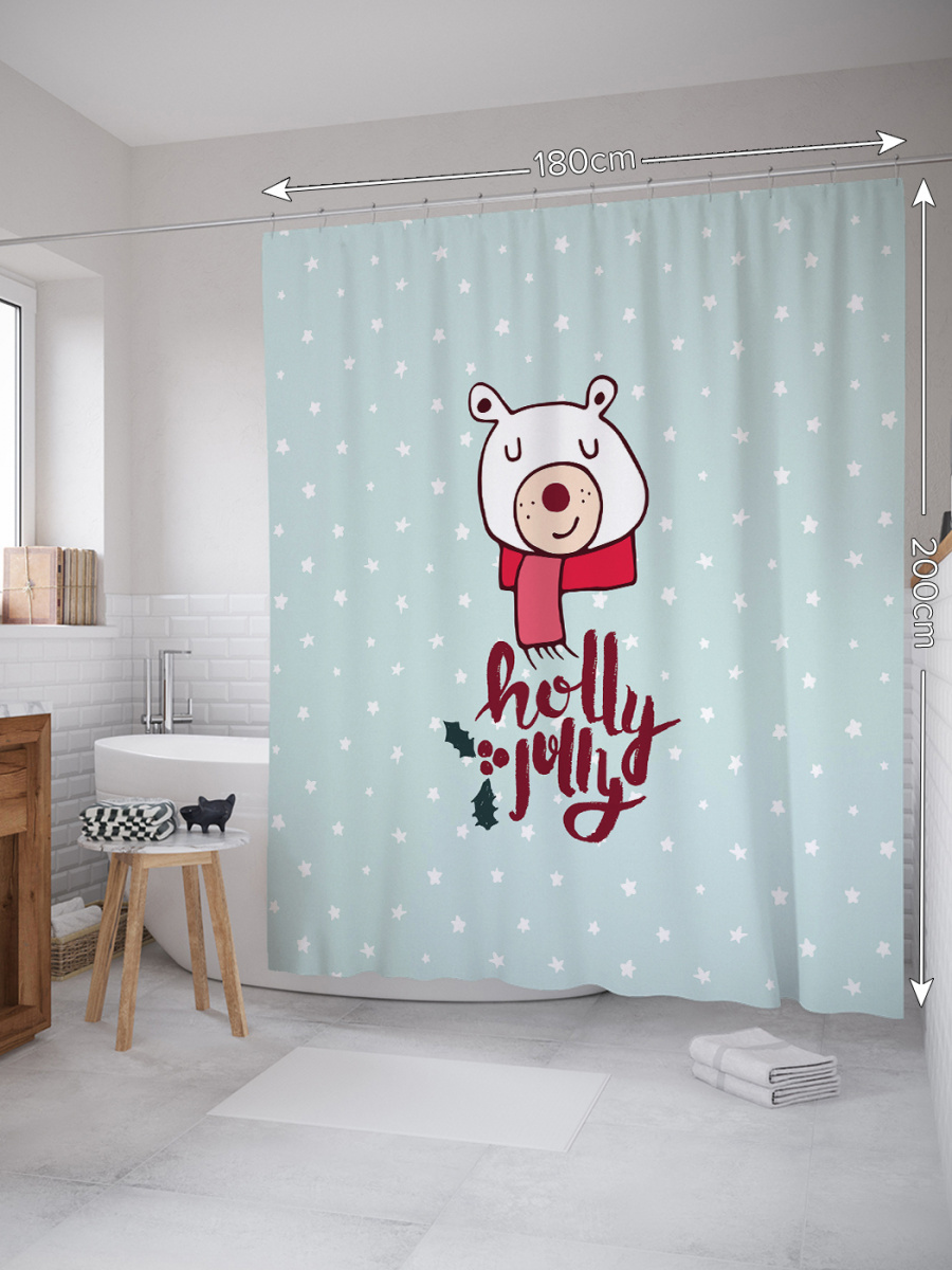 Штора (занавеска) для ванной "Довольный мишка" из ткани, 180х200 см с крючками
