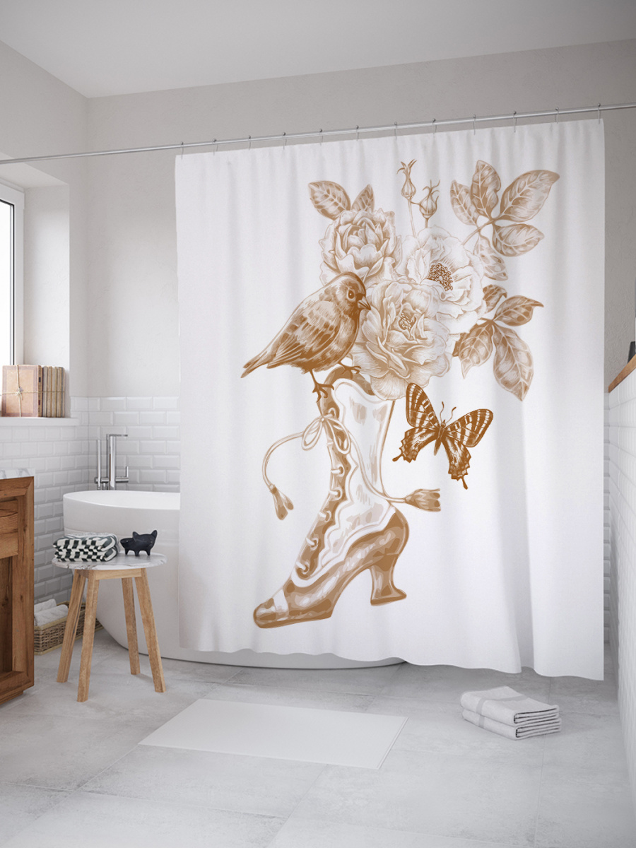 Штора (занавеска) для ванной "Оригинальный башмак" из ткани, 180х200 см с крючками