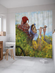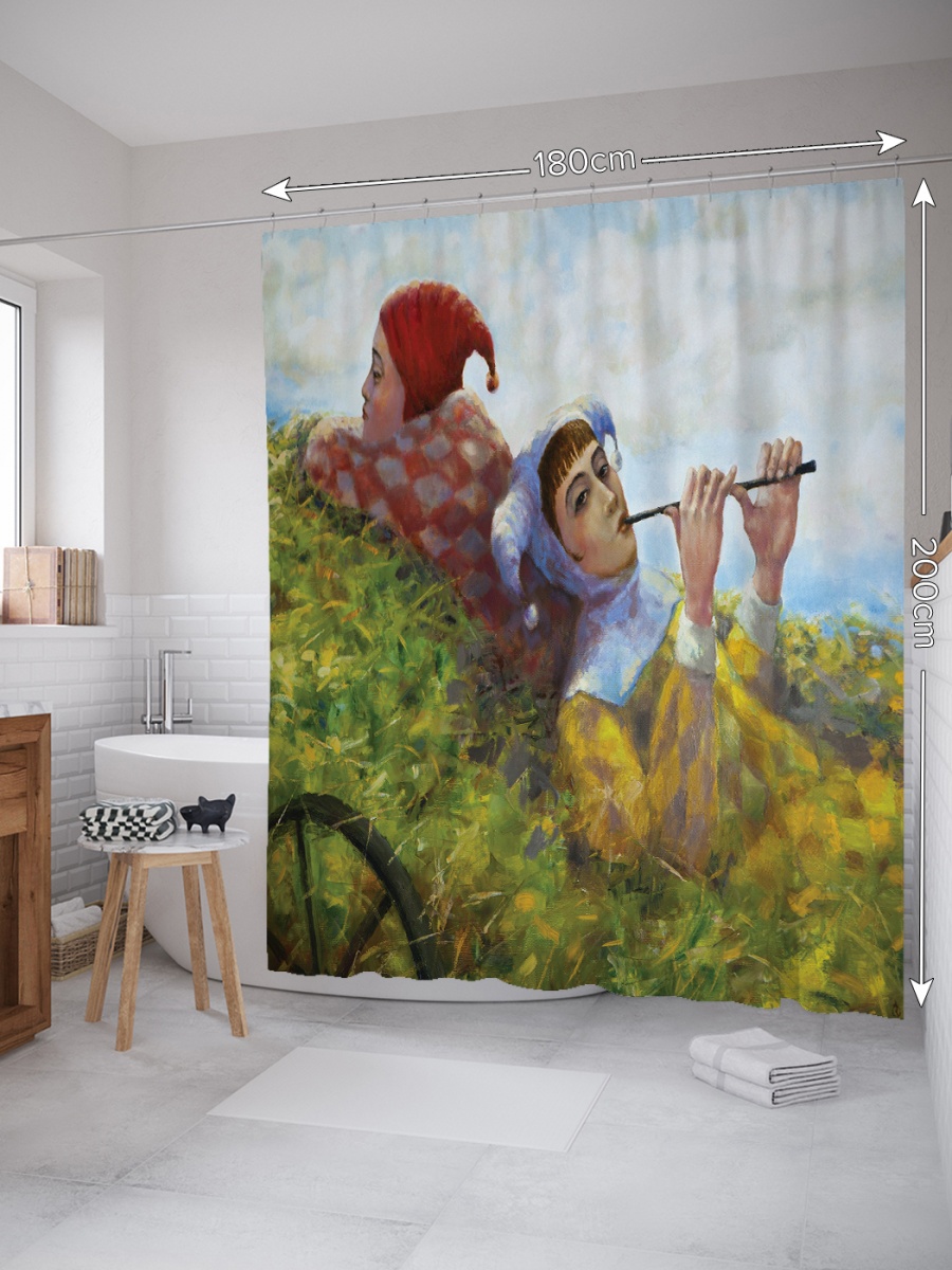 Штора (занавеска) для ванной "Шуты отдыхают" из ткани, 180х200 см с крючками