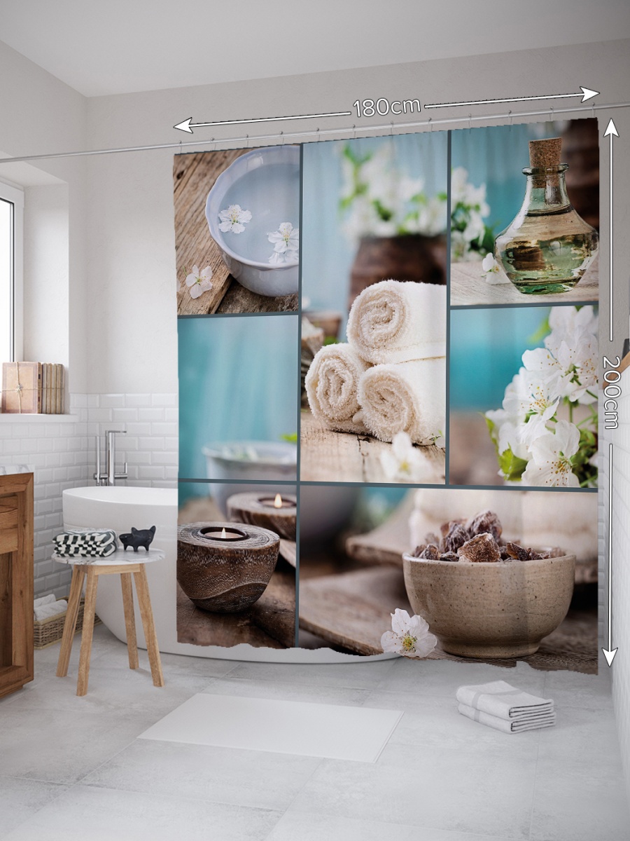Штора (занавеска) для ванной "Банные процедуры" из ткани, 180х200 см с крючками