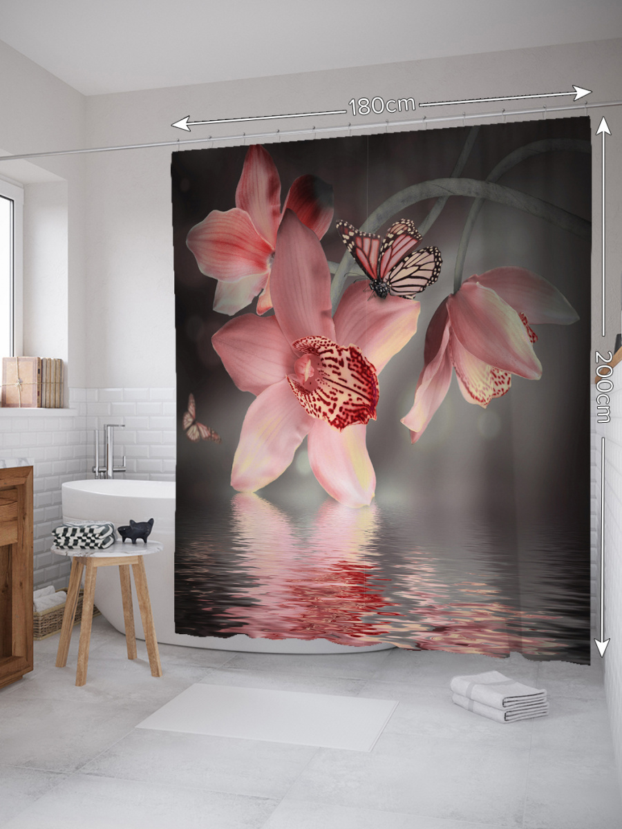 Штора (занавеска) для ванной "Цветок прошлого" из ткани, 180х200 см с крючками