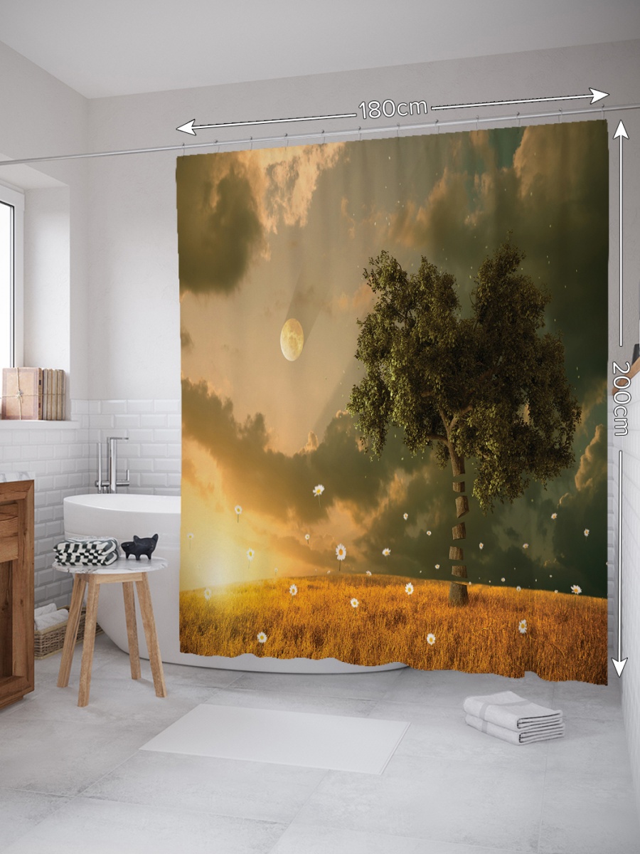 Штора (занавеска) для ванной "Одинокий рассвет" из ткани, 180х200 см с крючками