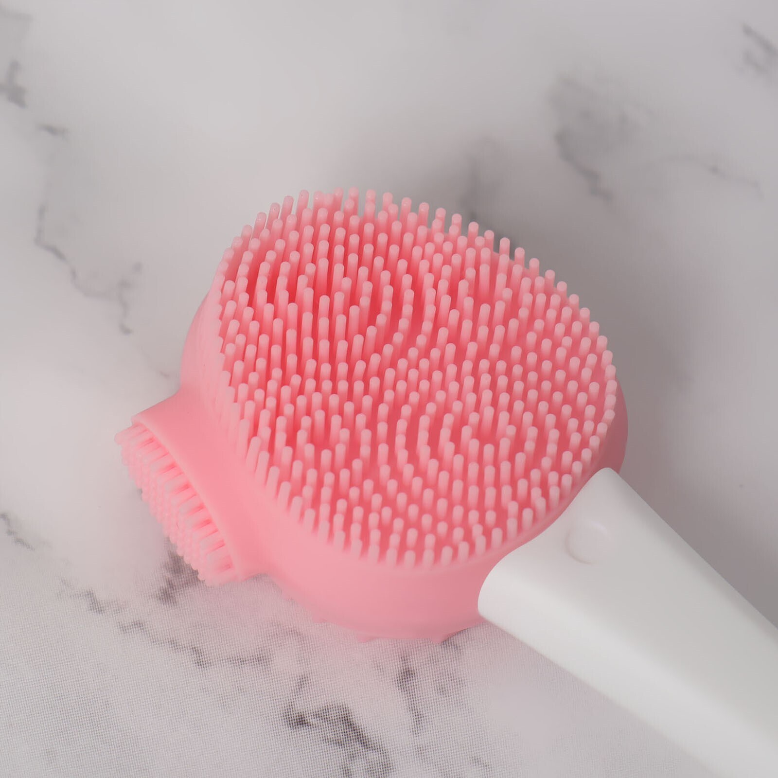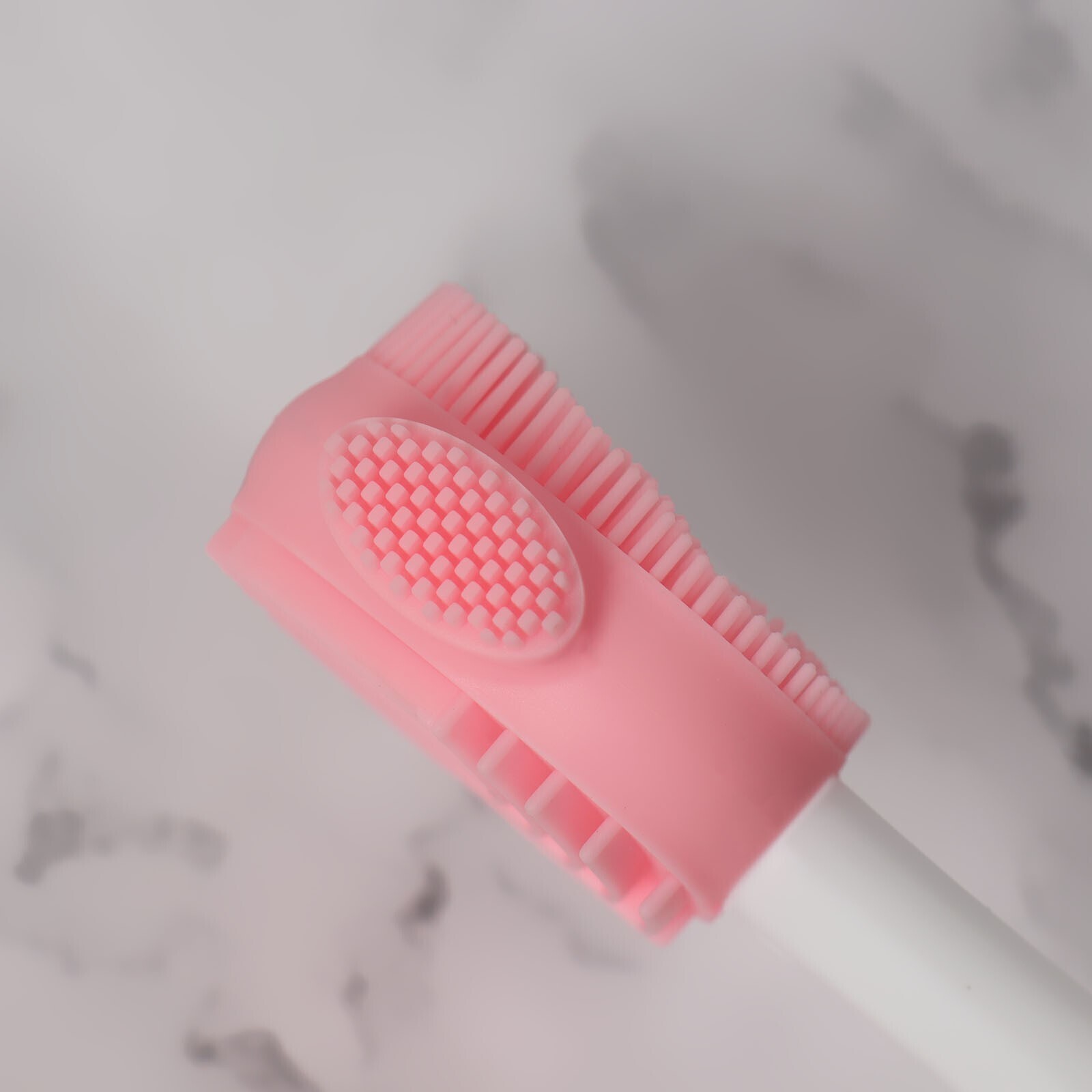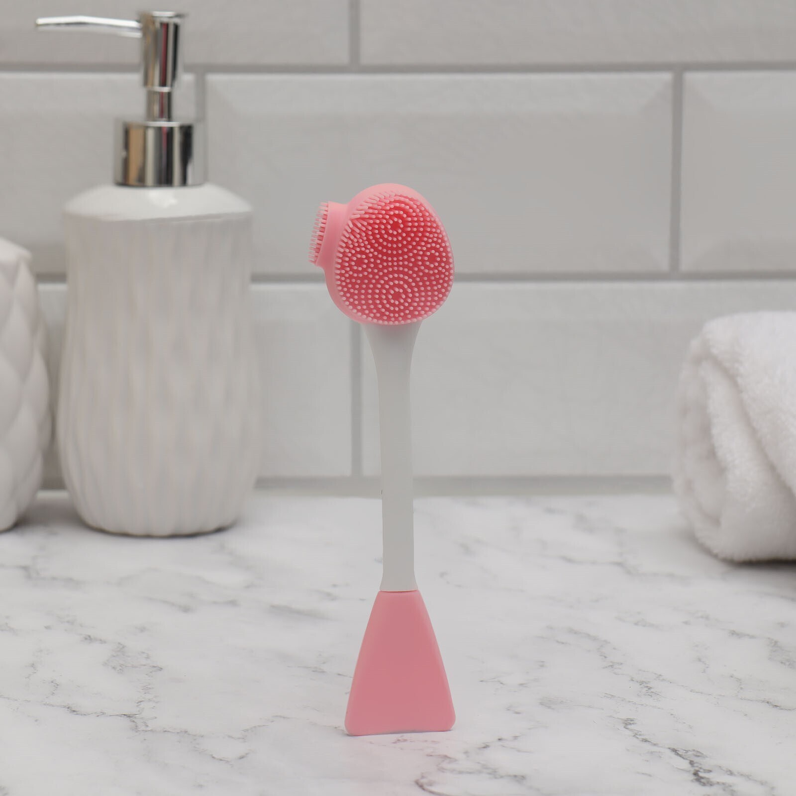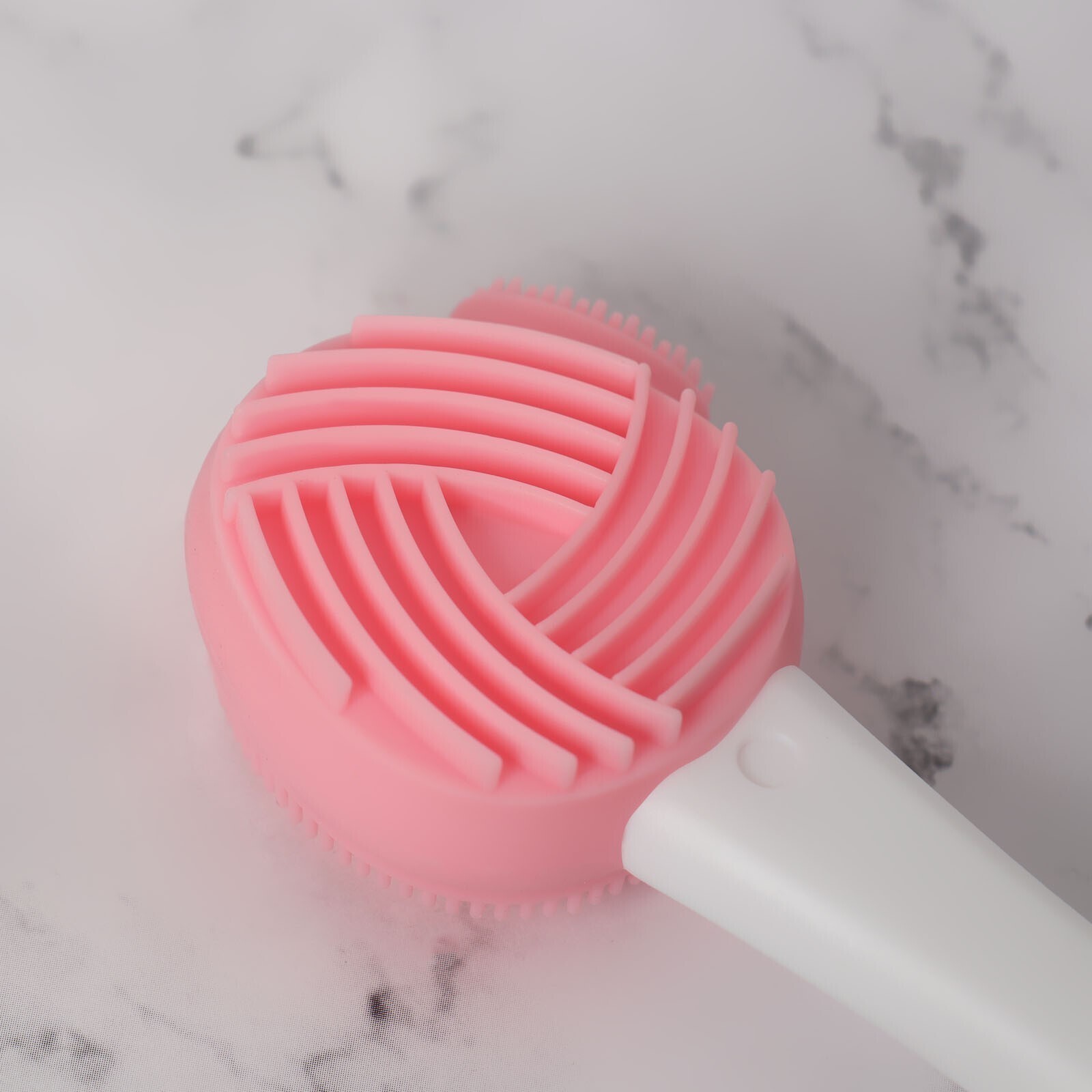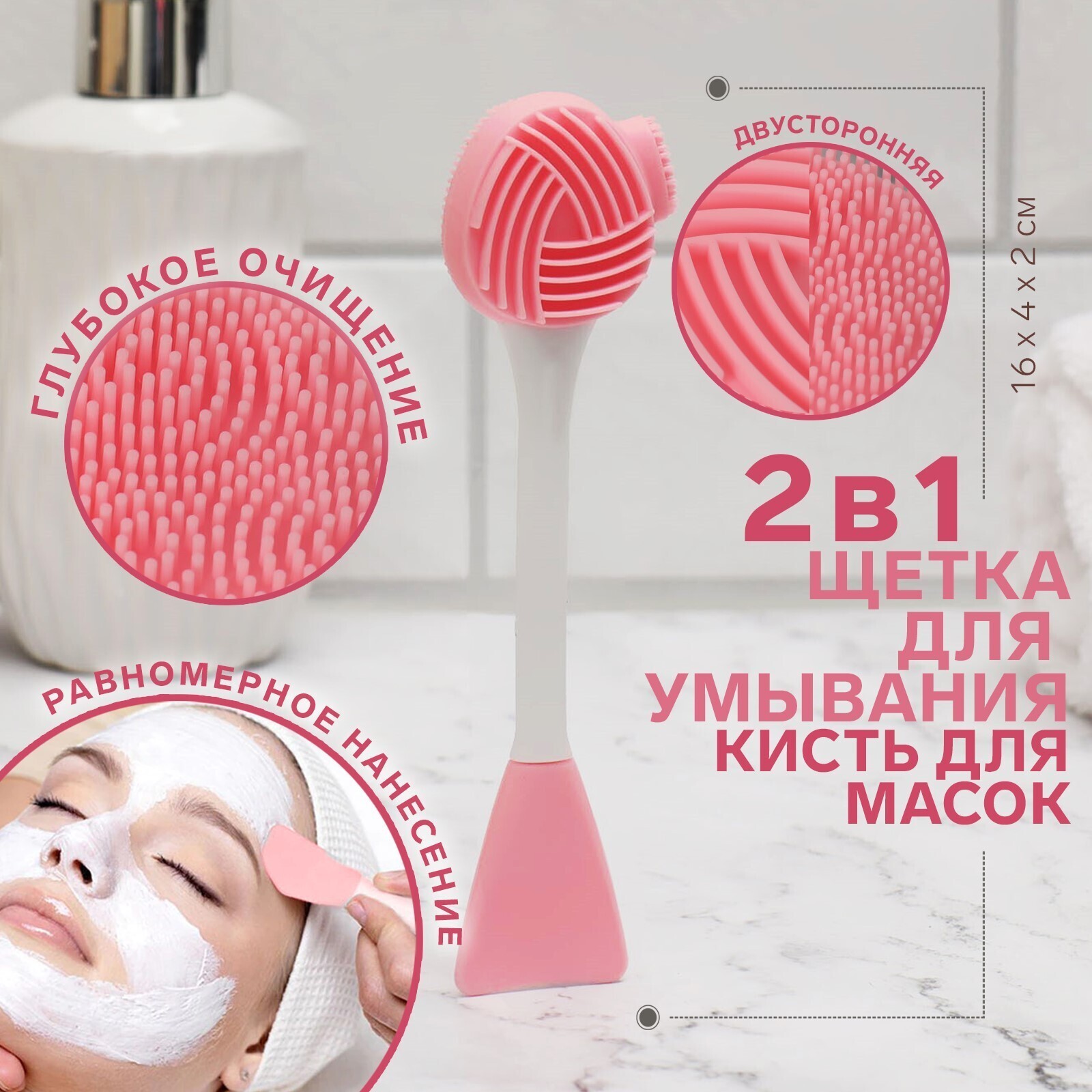 Щётка для умывания, силиконовая, двусторонняя, 16 × 4 × 2 см, цвет розовый/белый 7613643