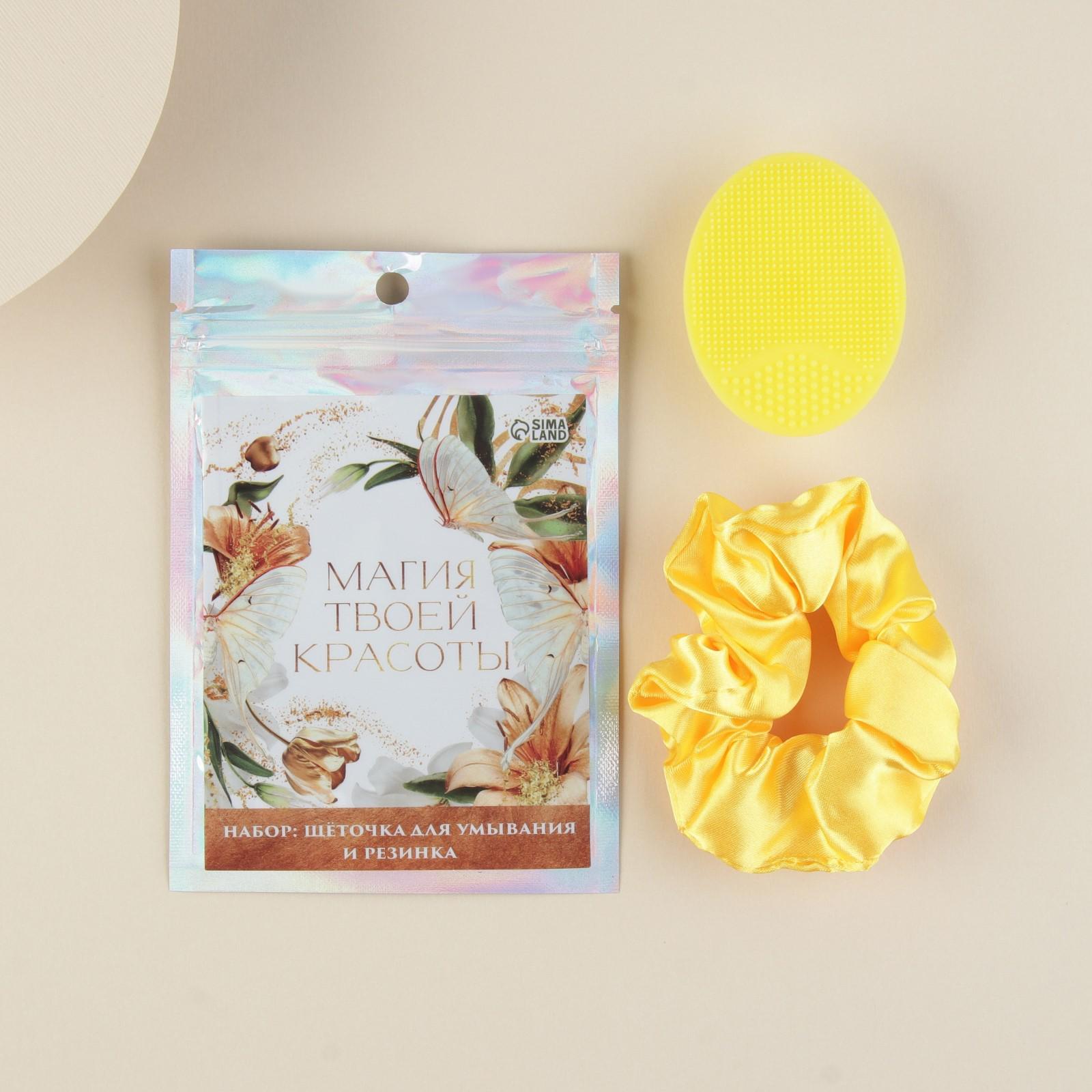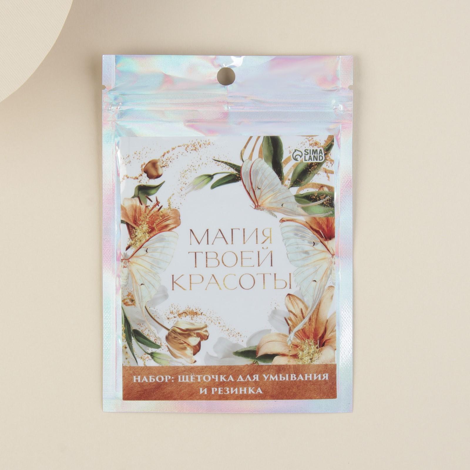 Спонж щёточка для умывания и резинка для волос «Магия красоты» 7370975