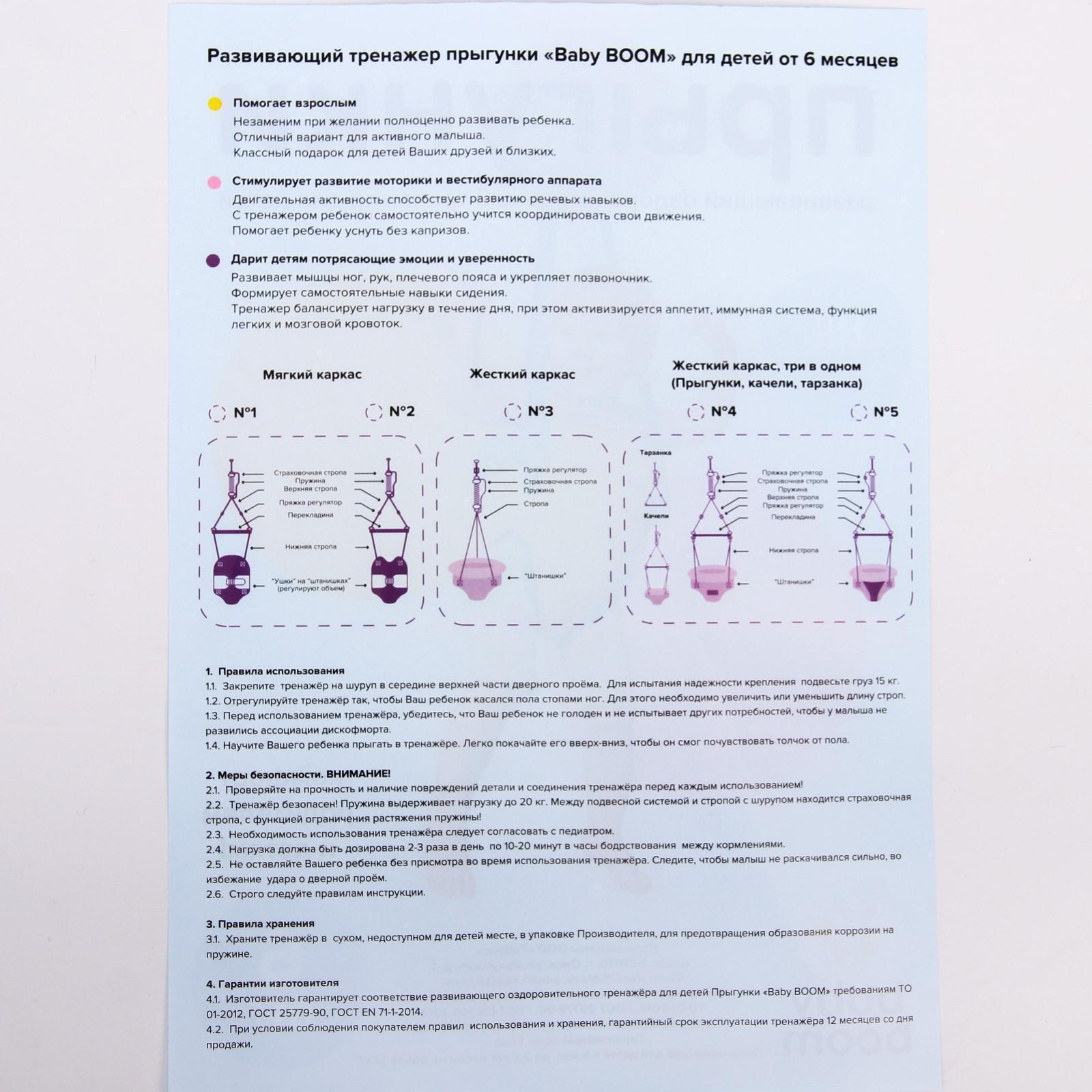 Допустимое время нахождения ребёнка в тренажёре — до 20 минут. Занятия рекомендовано проводить 2–3 раза в день в промежутках между кормлением.