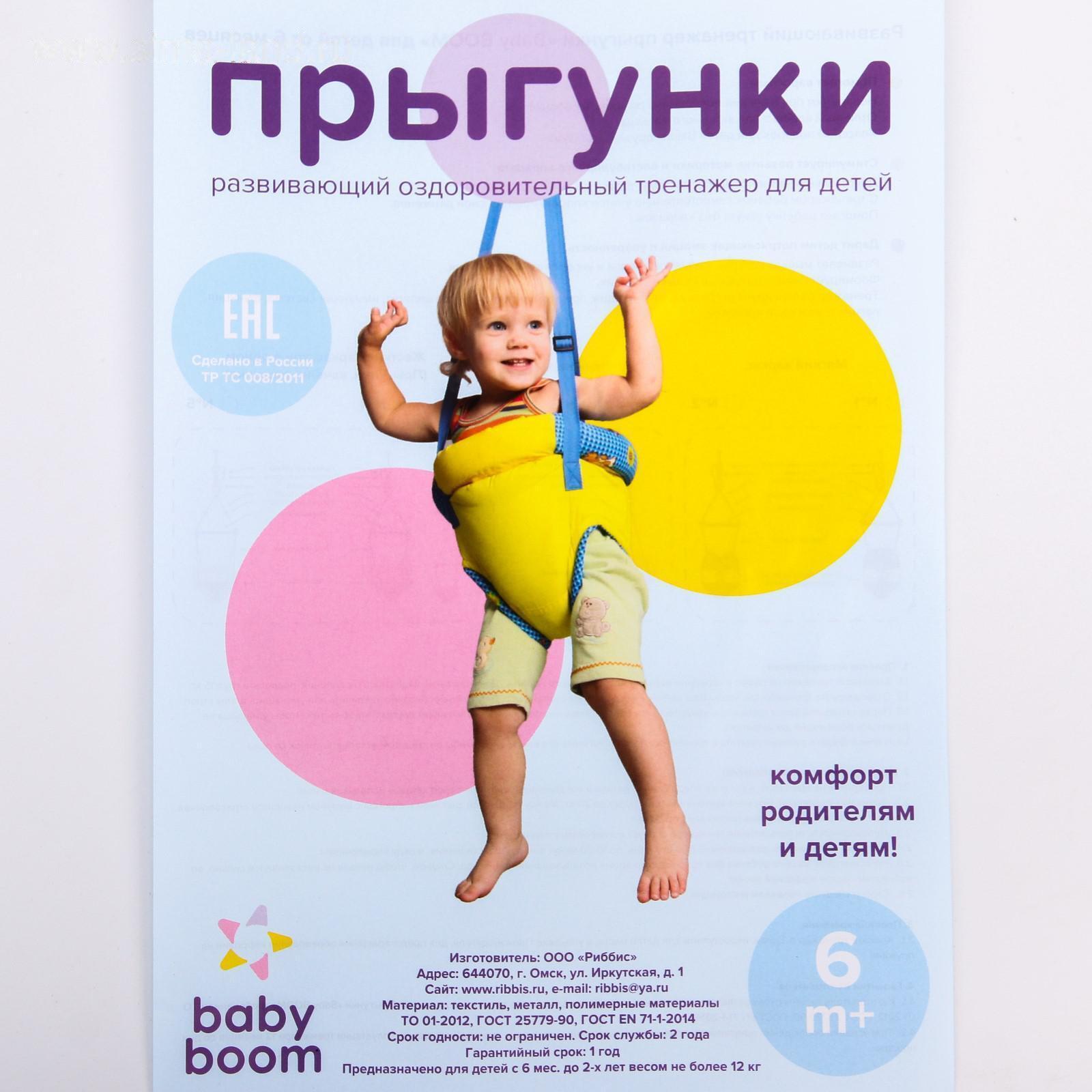 Посадите полугодовалого кроху в сиденье-штанишки. Малышу понравится активная игра, он будет подпрыгивать и качаться. Размер посадочного места можно настроить индивидуально, а за перекладину ребёнку будет удобно держаться.