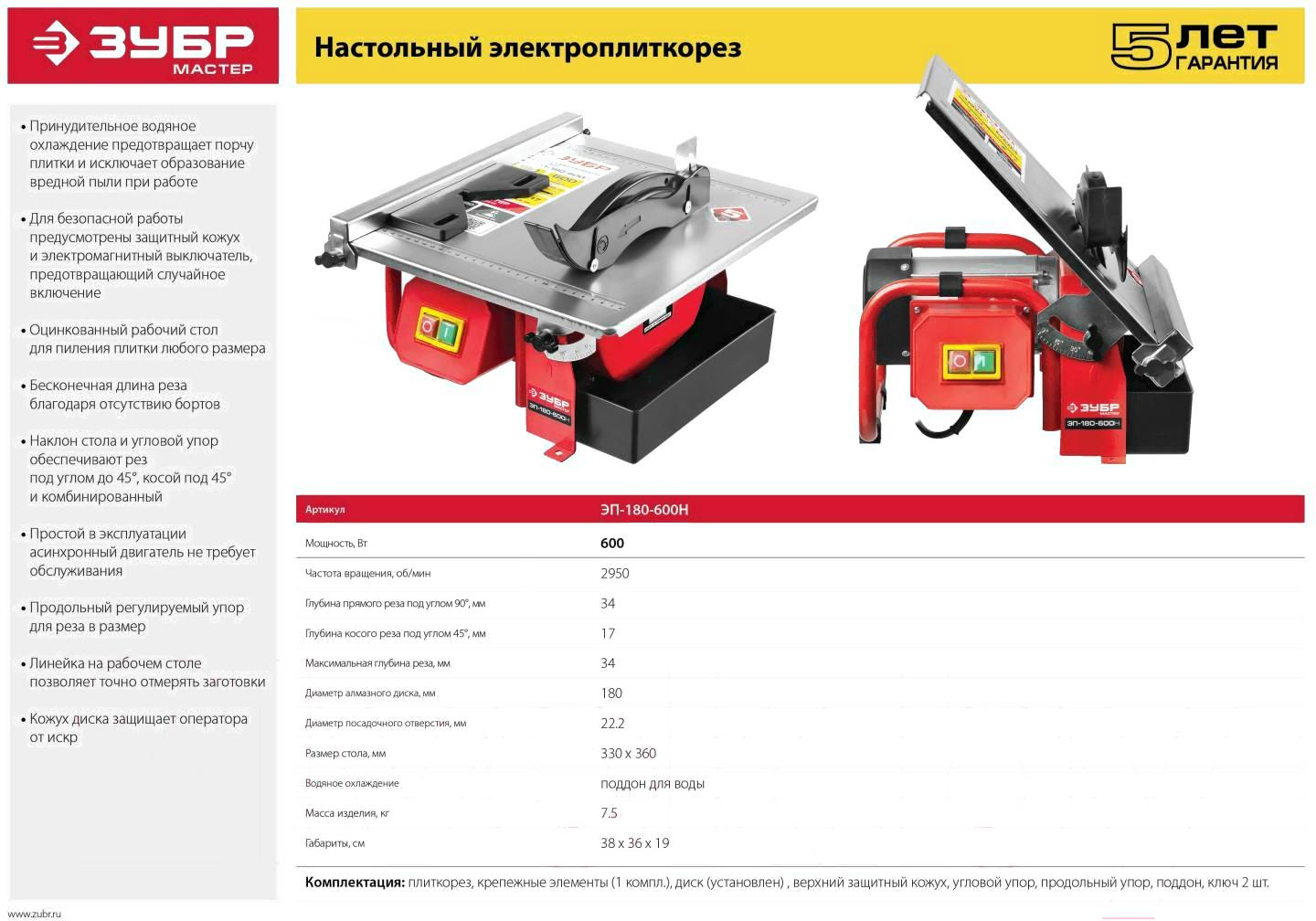 Плиткорез электрический Зубр Мастер ЭП-180-600Н