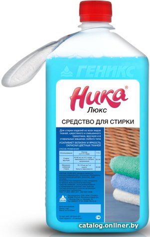 - Моющее жидкое средство Ника-Люкс 1л используется для стирки любых типов белья, в том числе шерстяного и смешанного трикотажа в стиральных машинах и при ручной стирке.Моющее средство для стирки белья Ника-Люкс применяется в заведениях общепита, больницах, школах, детских садах, лагерях, санаториях и в быту.Средство для стирки Ника-Люкс снимает пятна от чая, кофе, растительных масел, отлично растворяется в воде, бережно воздействует на ткань и защищает яркость вещей. Вещи и одежда из трикотажа после стирки не вытягивается и не скатывается.Моющее жидкое средство для стирки Ника-Люкс не содержит в своем составе хлор. Моющее жидкое средство Ника-Люкс 1л используется для стирки любых типов белья, в том числе шерстяного и смешанного трикотажа в стиральных машинах и при ручной стирке.Моющее средство для стирки белья Ника-Люкс применяется в заведениях общепита, больницах, школах, детских садах, лагерях, санаториях и в быту.Средство для стирки Ника-Люкс снимает пятна от чая, кофе, растительных масел, отлично растворяется в воде, бережно воздействует на ткань и защищает яркость вещей. Вещи и одежда из трикотажа после стирки не вытягивается и не скатывается.Моющее жидкое средство для стирки Ника-Люкс не содержит в своем составе хлор.