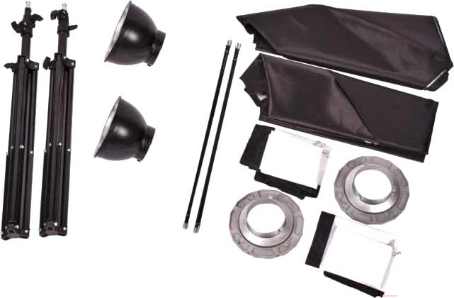- Состав комплекта вспышка (2 шт), софтбокс (2 шт), стойка (2 шт), сумка