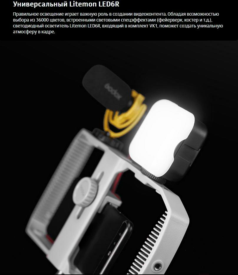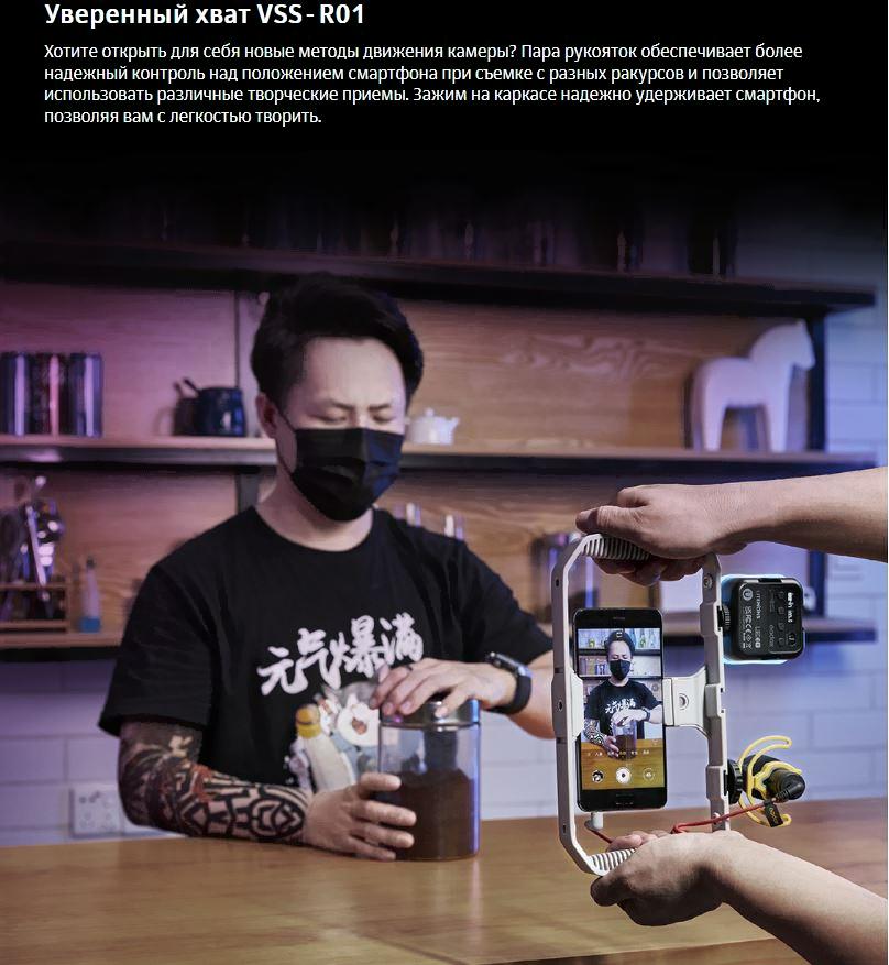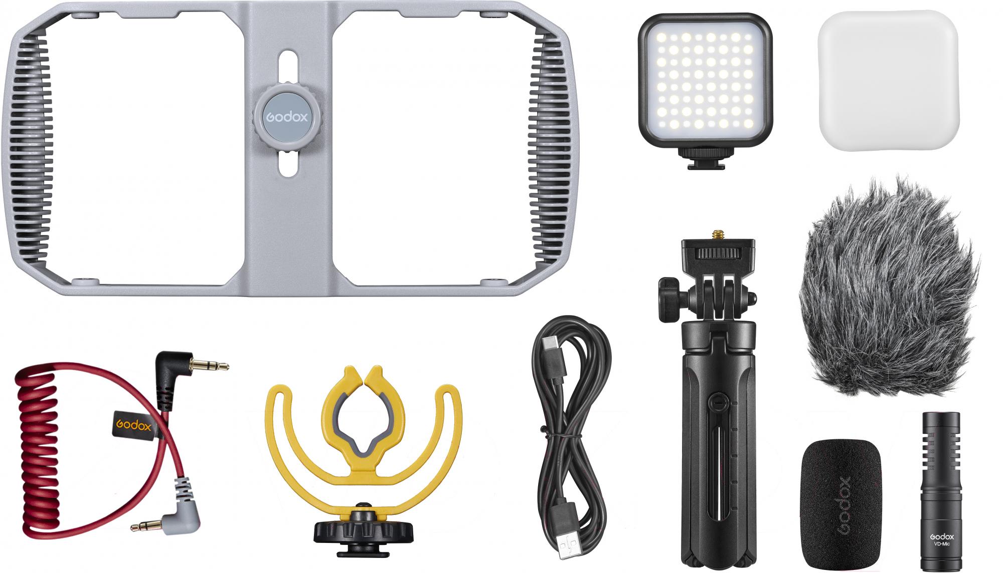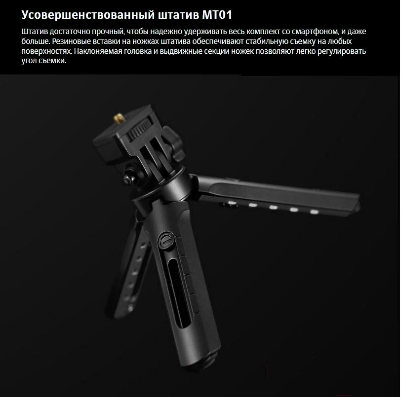 • Дополнительная комплектация рассеиватель, документация, микрофон, штатив (мини), кабель (USB-Type C; аудиокабель), ветрозащита (ворсовая и поролоновая ), антивибрационный подвес для микрофона, клетка-каркас для смартфона