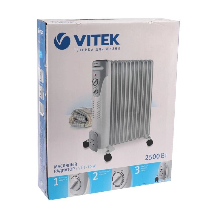 Обогреватель Vitek VT-1710 W, масляный, 2500 Вт, 11 секций, 25 м2, белый