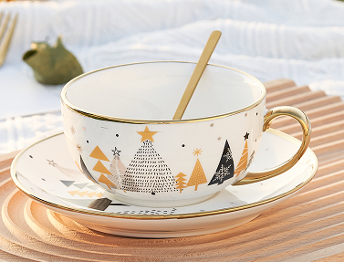 Чайная пара новогодняя Christmas Tree, с ложкой, керамика, арт. MUK6