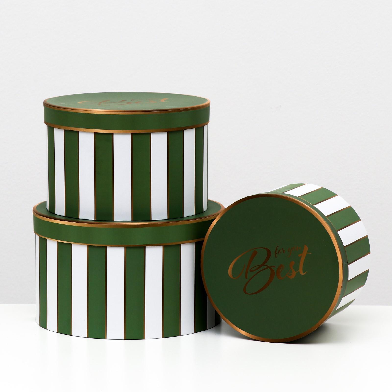 Набор круглых коробок 3 в 1, зелено-белый, 25,5 x 15 - 19 x 13,5 см 7128434