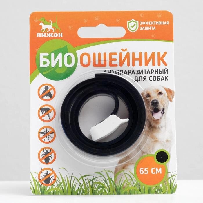 Биоошейник антипаразитарный "ПИЖОН" для собак от блох и клещей, чёрный, 65 см