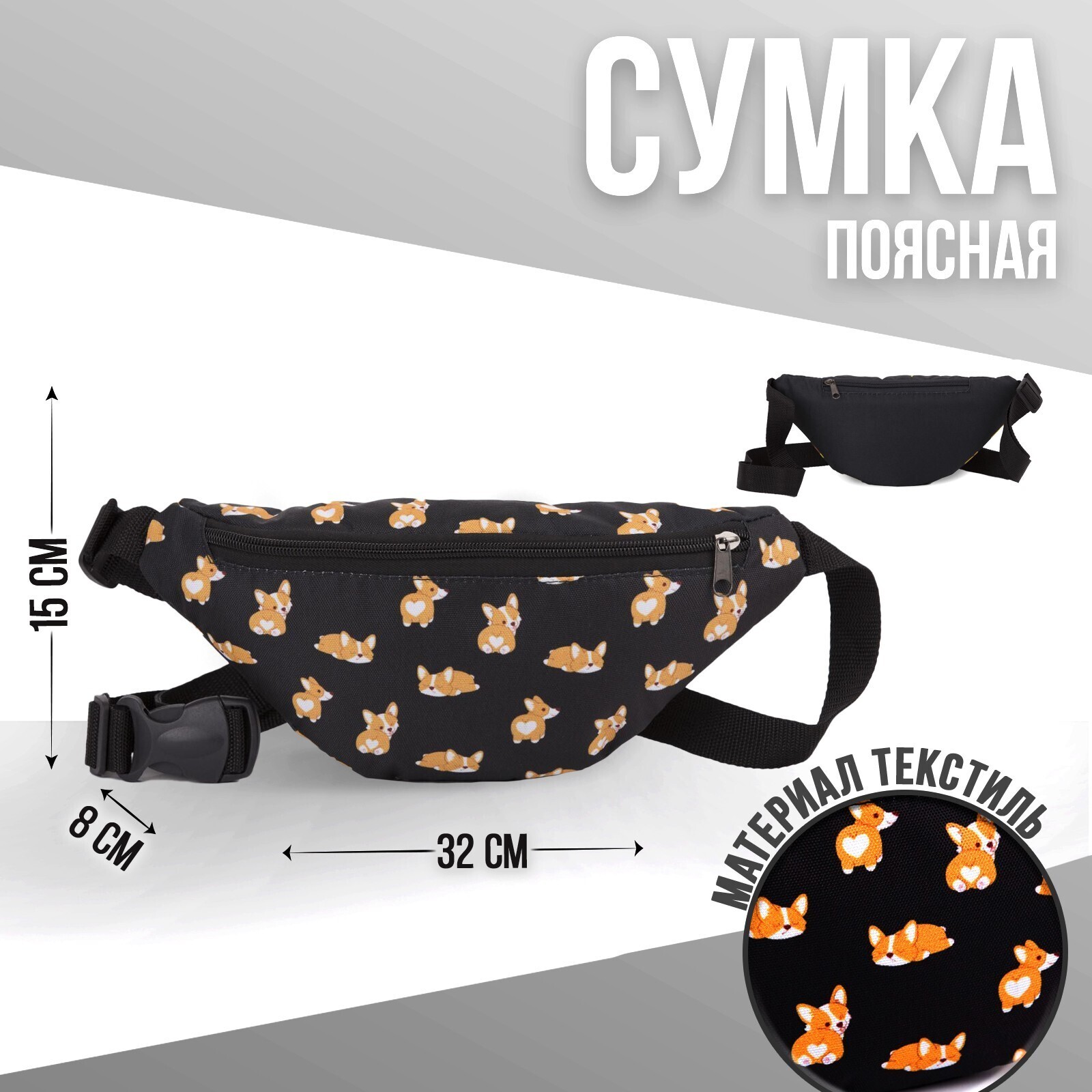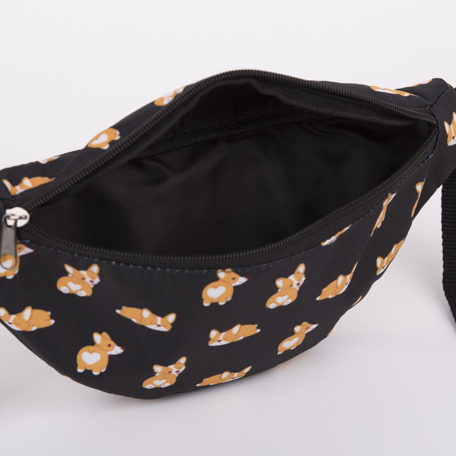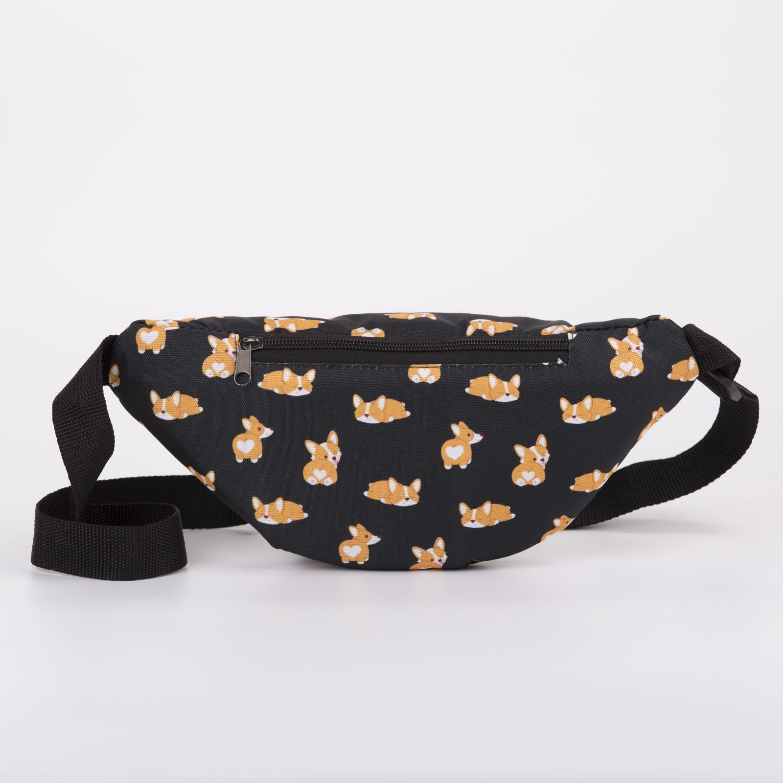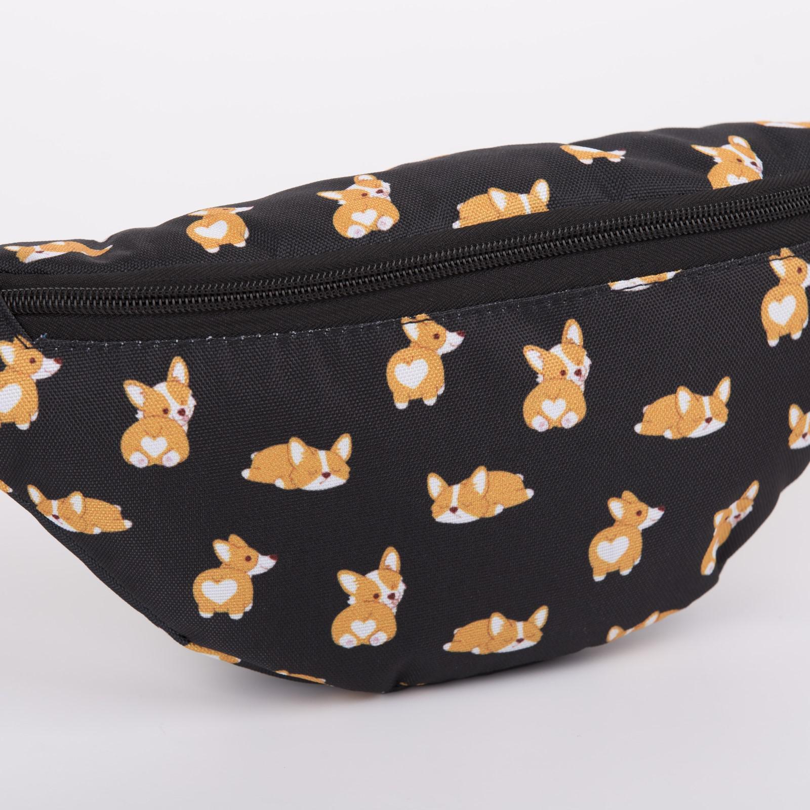 Сумка поясная «Корги», 32х8х15 см, отдел на молнии, наружный карман, цвет чёрный 5467255