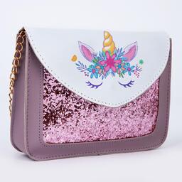 Сумка детская на ремешке «Единорожка», с цепочкой, с блестками, цвет розовый 5312022