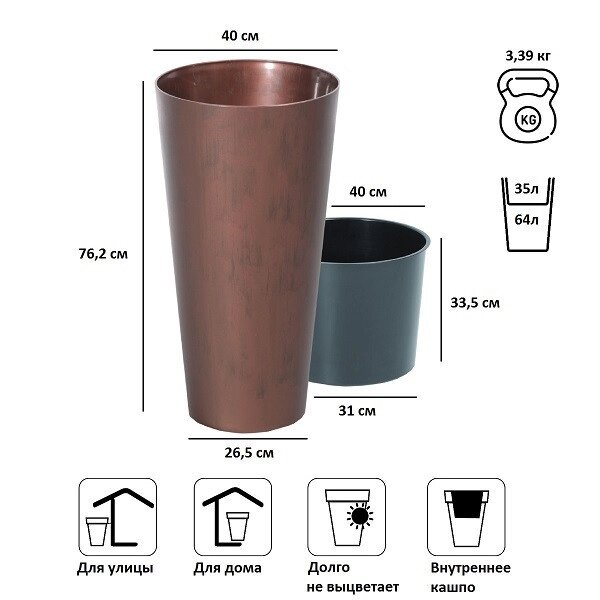 Горшок пластиковый TUBUS SLIM corten 400, кортен