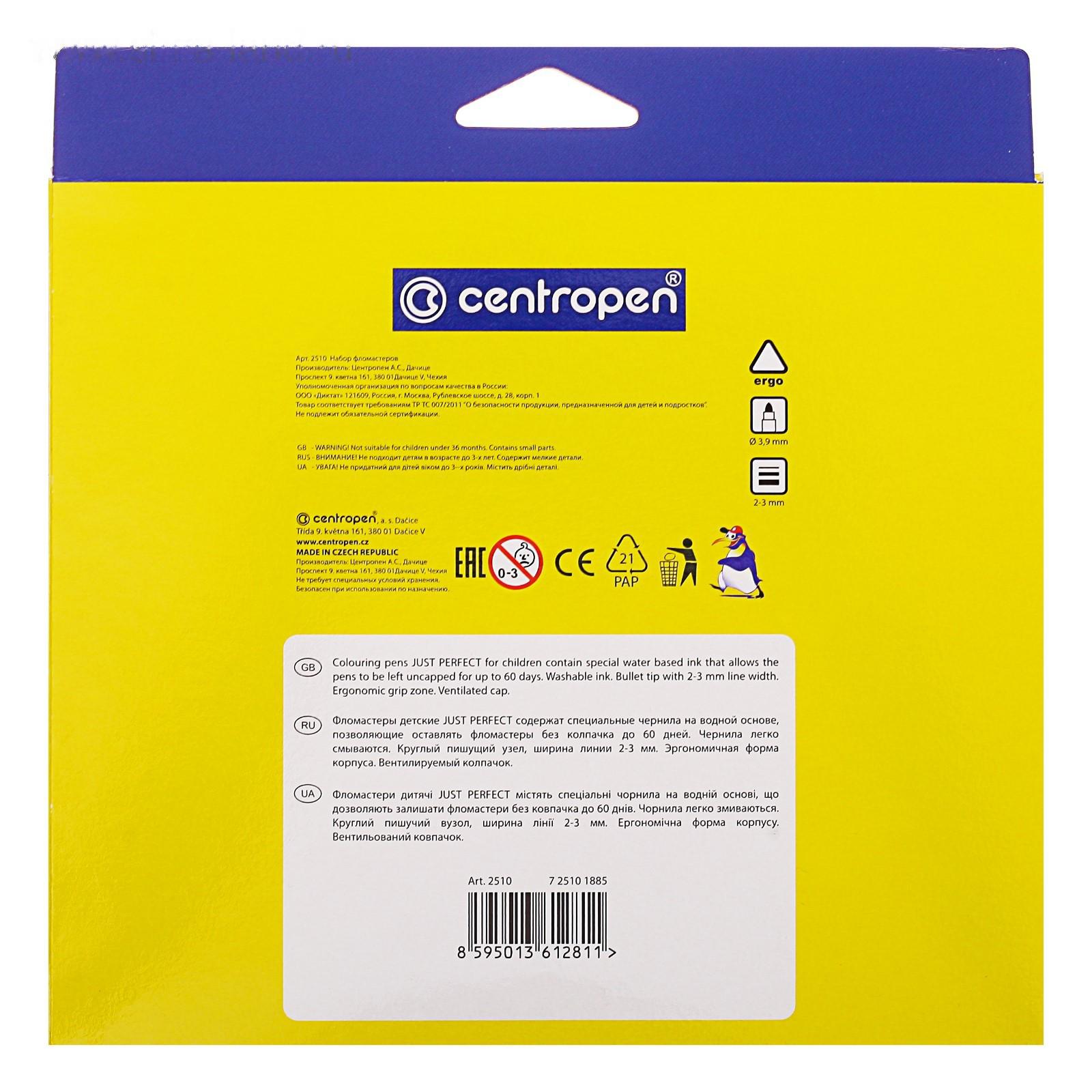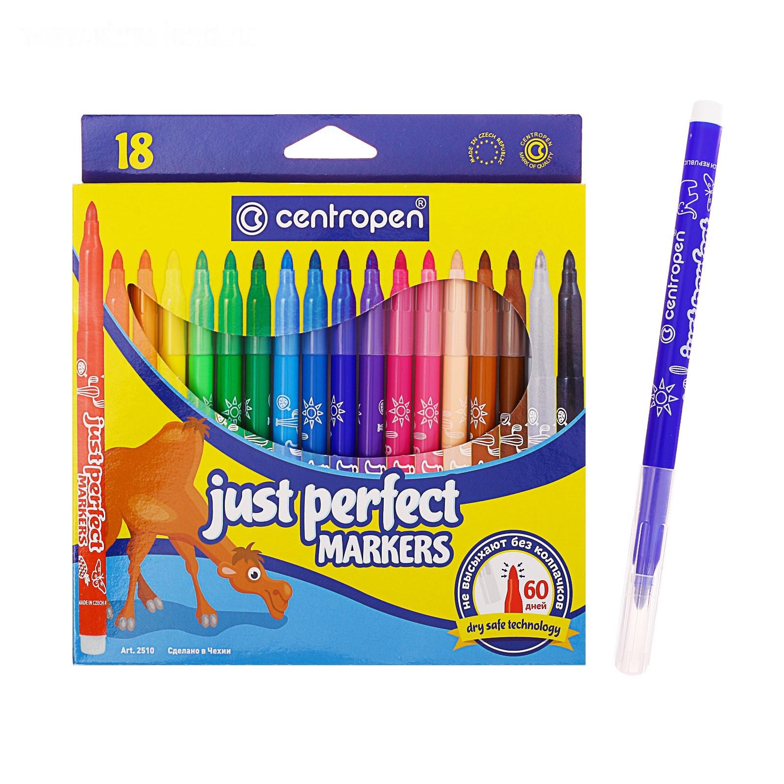 Фломастеры 18 цветов 3.9 мм Centropen 2510 Perfect, невысыхаемые, картонная упаковка, европодвес 2468411