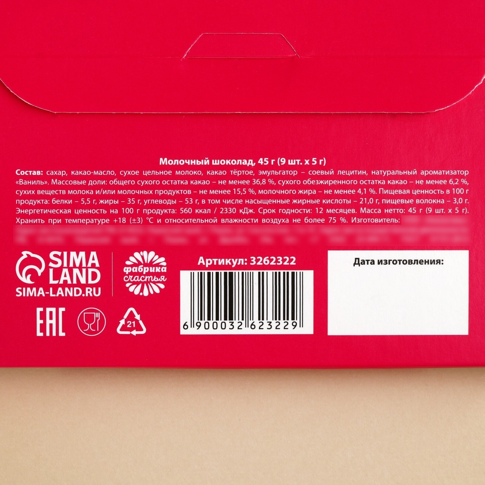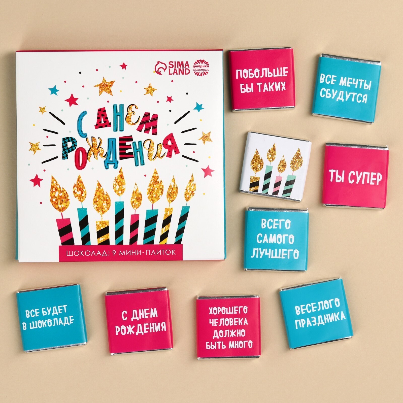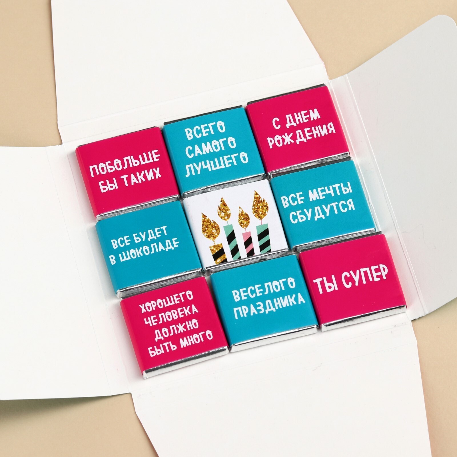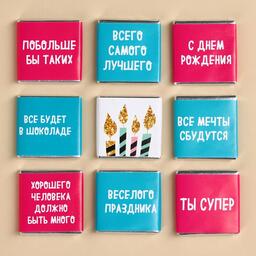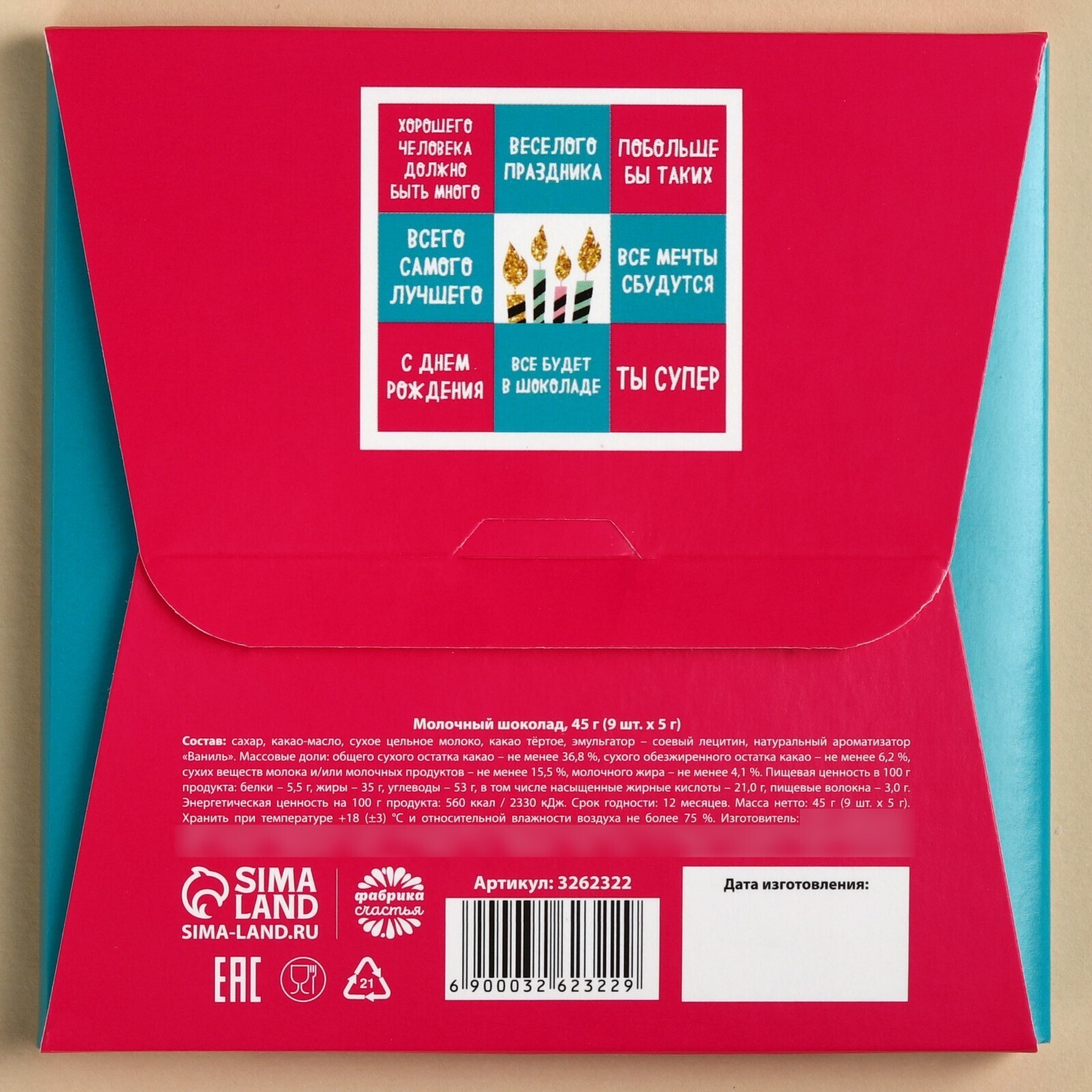 Шоколад молочный «С днём рождения», открытка, 5 г. х 9 шт. 3262322