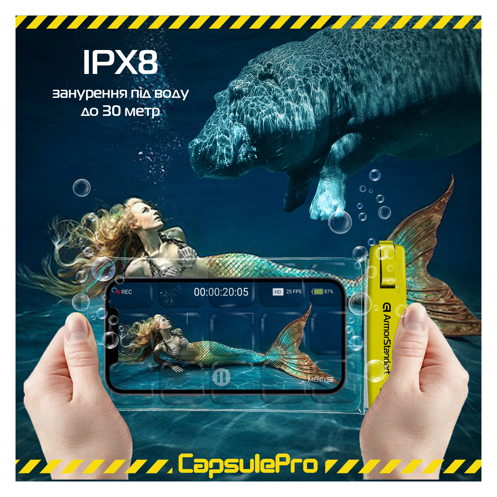 Водонепроникний чохол ArmorStandart CapsulePro Waterproof Floating Case чудово захистить смартфон під час занять екстремальними видами спорту, а також на активному відпочинку, на пляжі або воді.