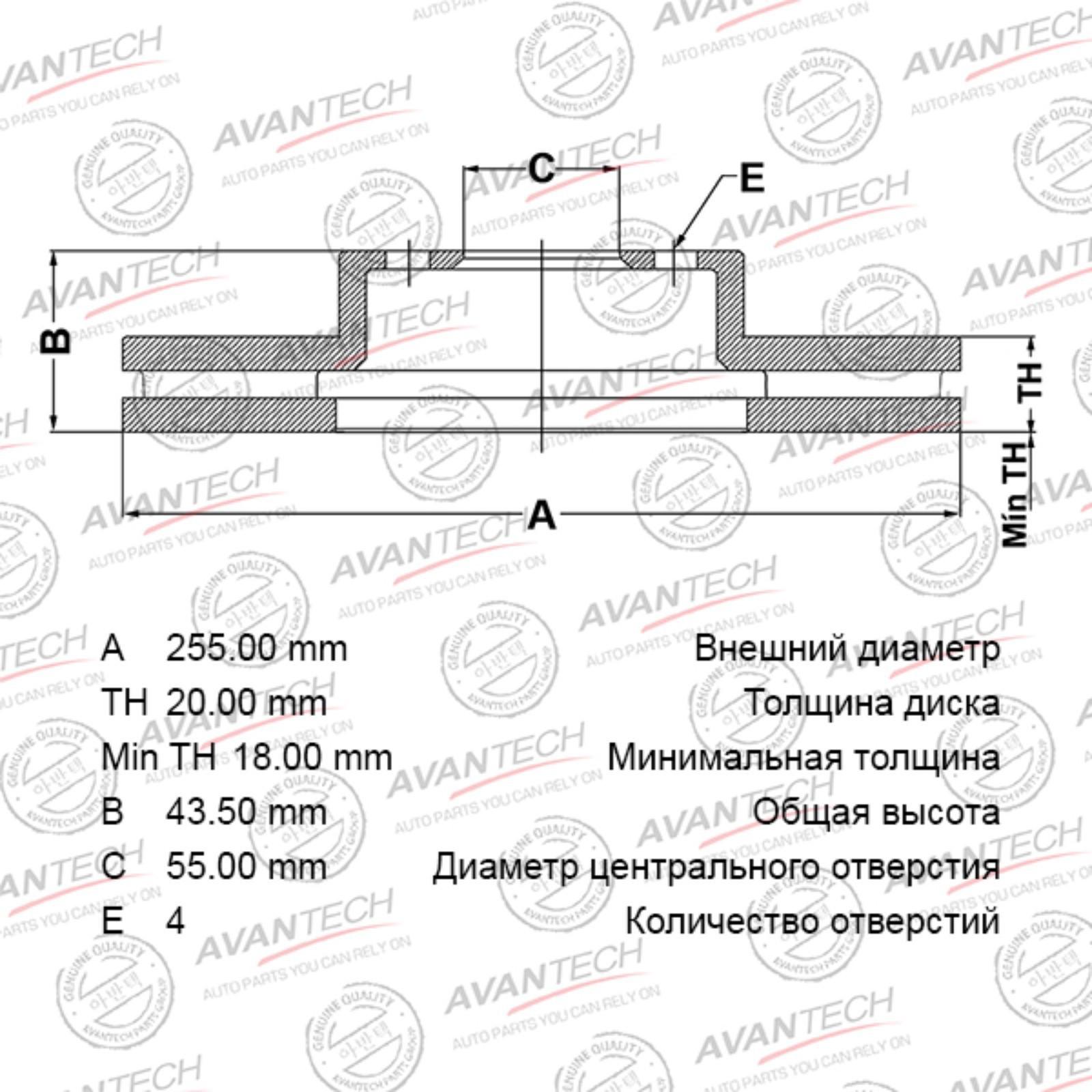 Диск тормозной AVANTECH (FR) Vitz, Funcargo, Ist (NCP1#,2#, 6# SCP1#) 10.2000 - 01.2005 7658973