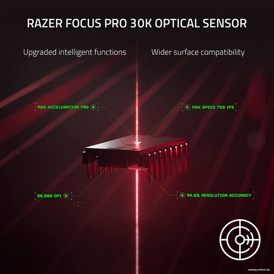 Дополнительные характеристики сенсорамаксимальное ускорение (акселерация) 70Gмаксимальная скорость отслеживания 750 дюймов/секмакс. частота опроса при использовании HyperPolling Wireless Dongle - 8000 Гц (в комплект поставки не входит)