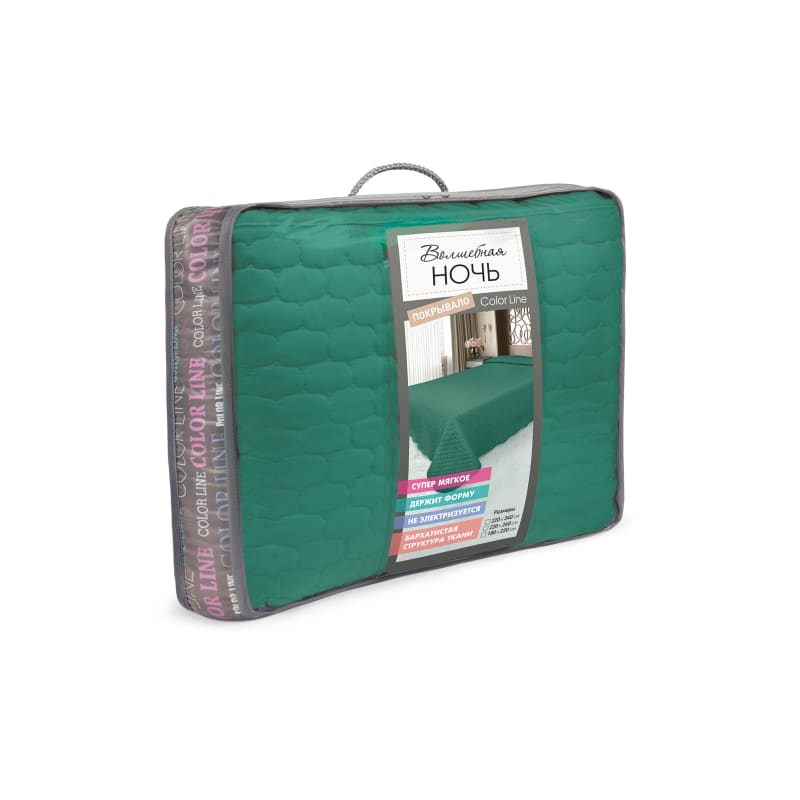 Покрывало Волшебная ночь 260х220 см, цвет изумрудный, коллекция Color Line, микрофибра