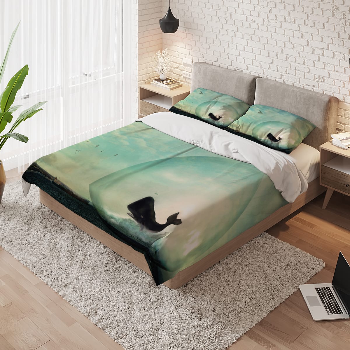 Комплект постельного белья AMBESONNE «Кит в прозрачном шаре» евро, микрофибра