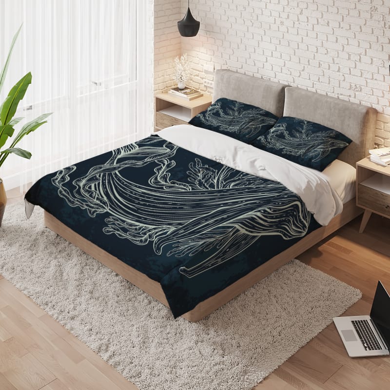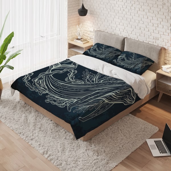 Комплект постельного белья AMBESONNE «Кит в водорослях» евро, микрофибра