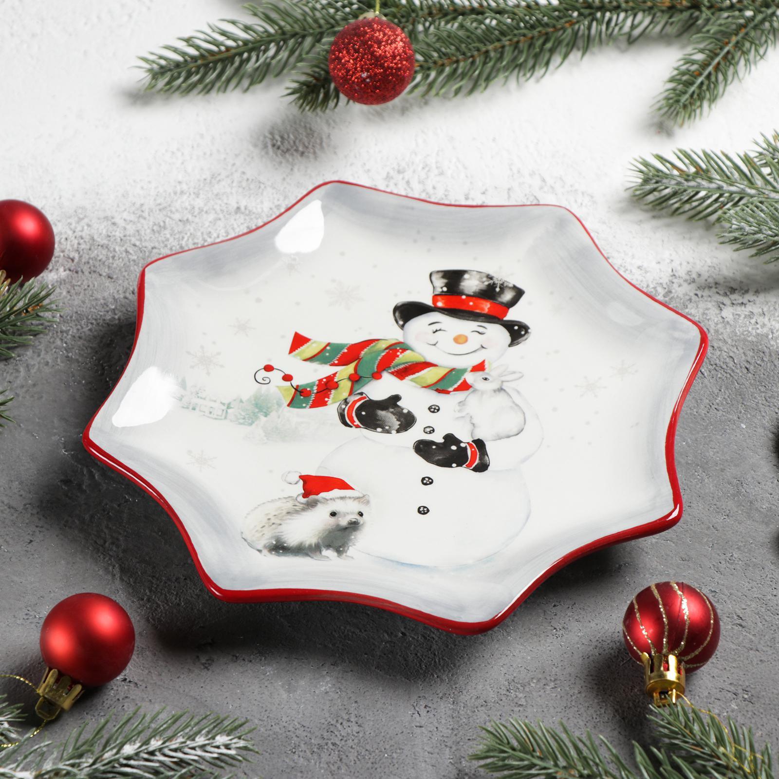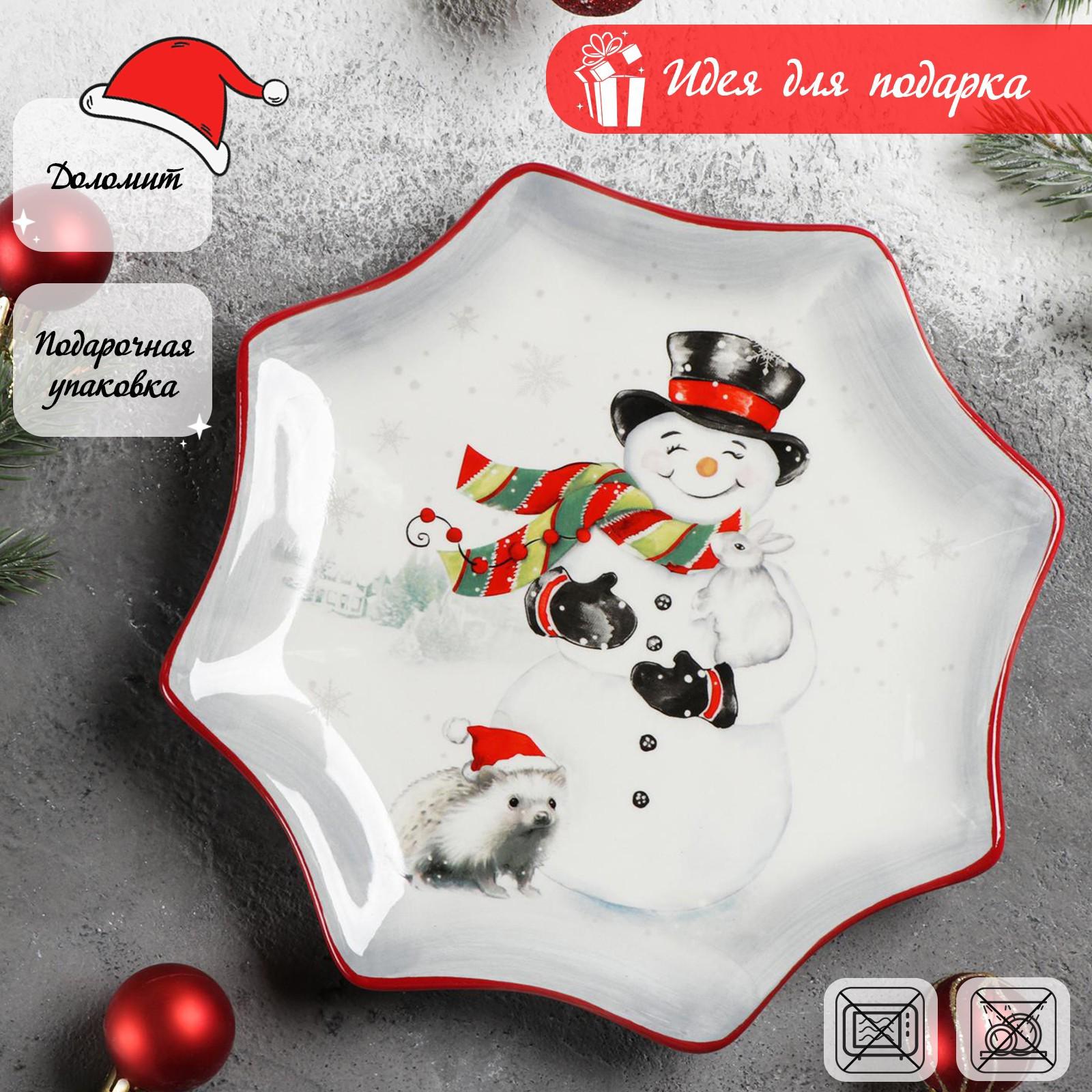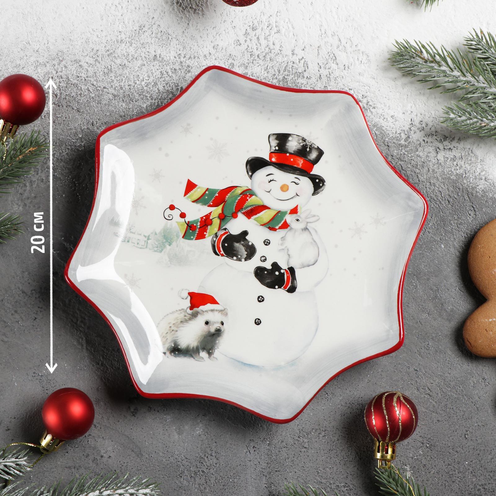 Блюдо сервировочное Доляна «Снеговик со зверятами», 20×2,3 см 6249512