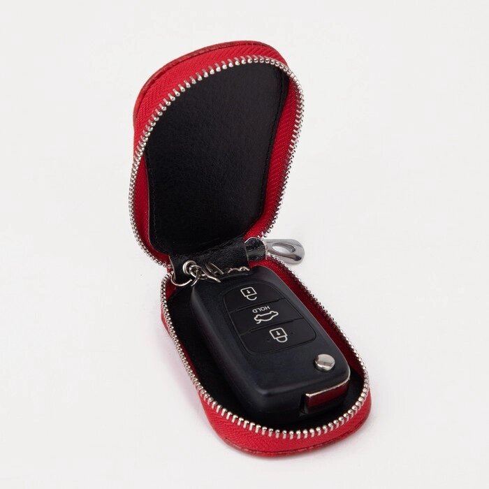 Ключница 9*2*5 см, 1 карабин, кольцо, на молнии, красный