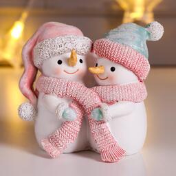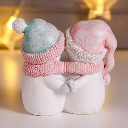 Сувенир полистоун "Снеговички в розовом колпаке и мятной.шапке - объятия" 8х5,5х9 см 6343751