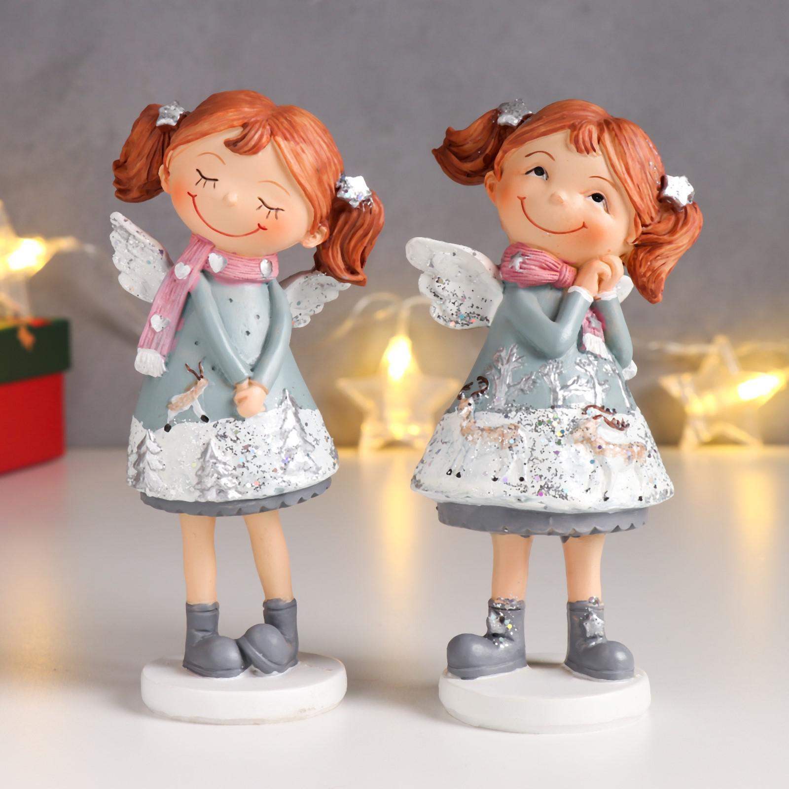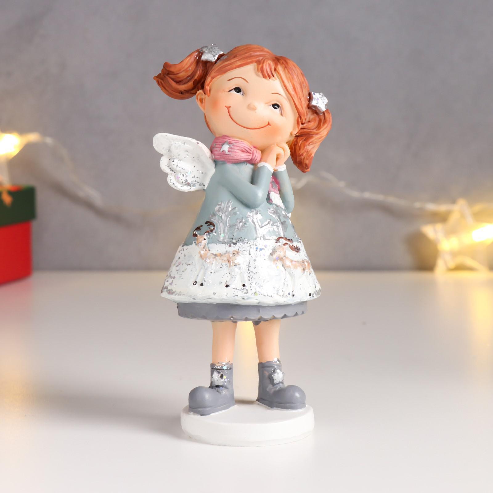 Сувенир полистоун "Малышка-ангелок в новогоднем платье с оленями" МИКС 15х7х7,5 см 6494640