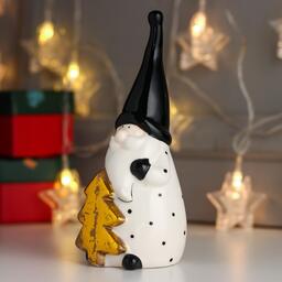Сувенир керамика "Дед Мороз, белый кафтан, чёрный колпак, золотая ёлочка" 17,5х6,5х7 см 6494505