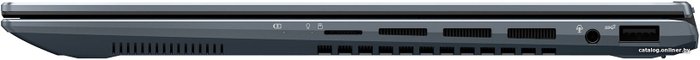 • Характеристики дисплея 14", 2,8K (2880 x 1800) OLED 16:10, светодиодная подсветка, время отклика 0,2 мс, частота обновления 90 Гц, пиковая яркость 550 кд/м2, DCI-P3: 100%, контрастность 1000000:1, сертификация VESA Display HDR True Black 500, 1,07 млрд оттенков, сертификация Pantone Validated, глянцевый, на 70% меньше синего света, сертификация SGS, сенсорный, относительная площадь экрана: 88%, поддержка стилуса