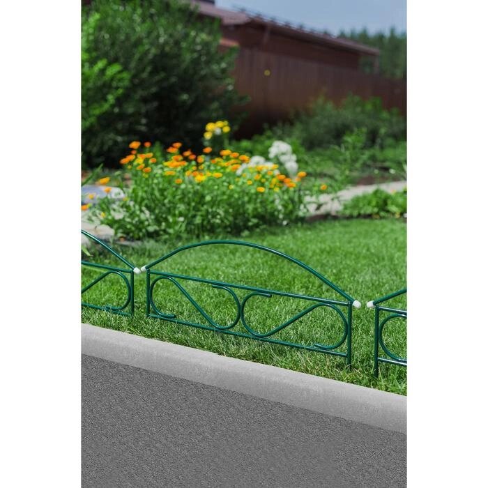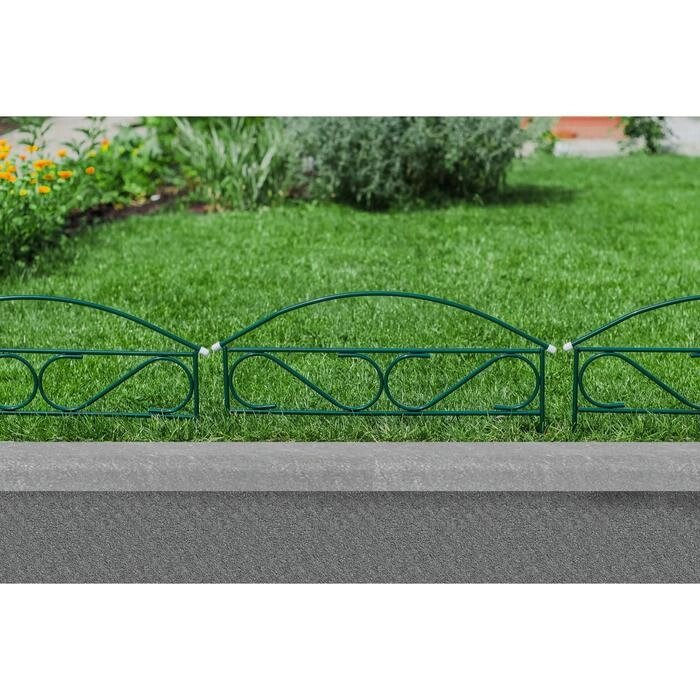 Ограждение декоративное, 37 325 см, 5 секций, металл, зелёное, "Узкий мини", Greengo