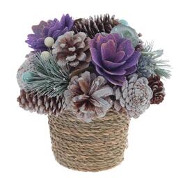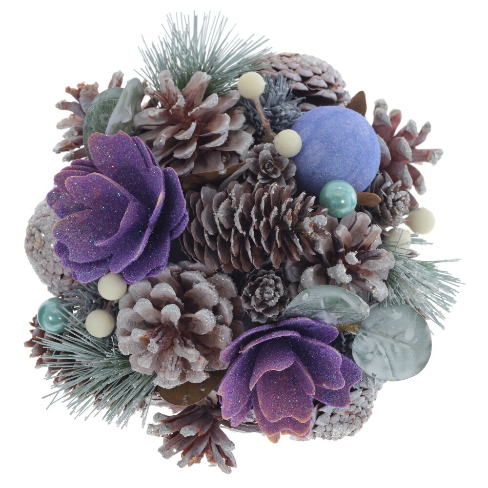 Изделие декоративное "Новогодняя композиция" в кашпо. Кашпо из плотного картона оформлено джутовой веревкой. Композиция из натуральных шишек, искусственных цветов, листьев, веток и шаров будет дарить праздничное настроение в новогодние праздники.