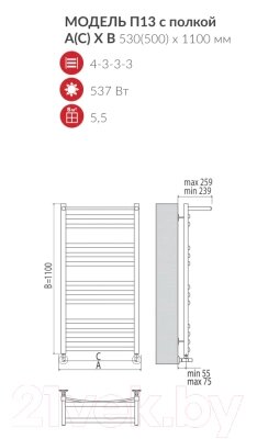 Полотенцесушитель водяной Terminus Енисей П13 с полкой 500x1100