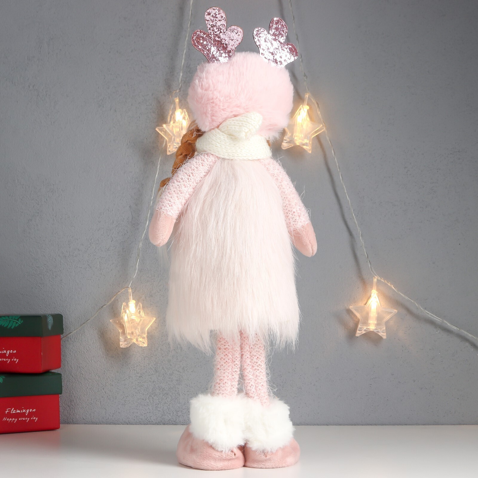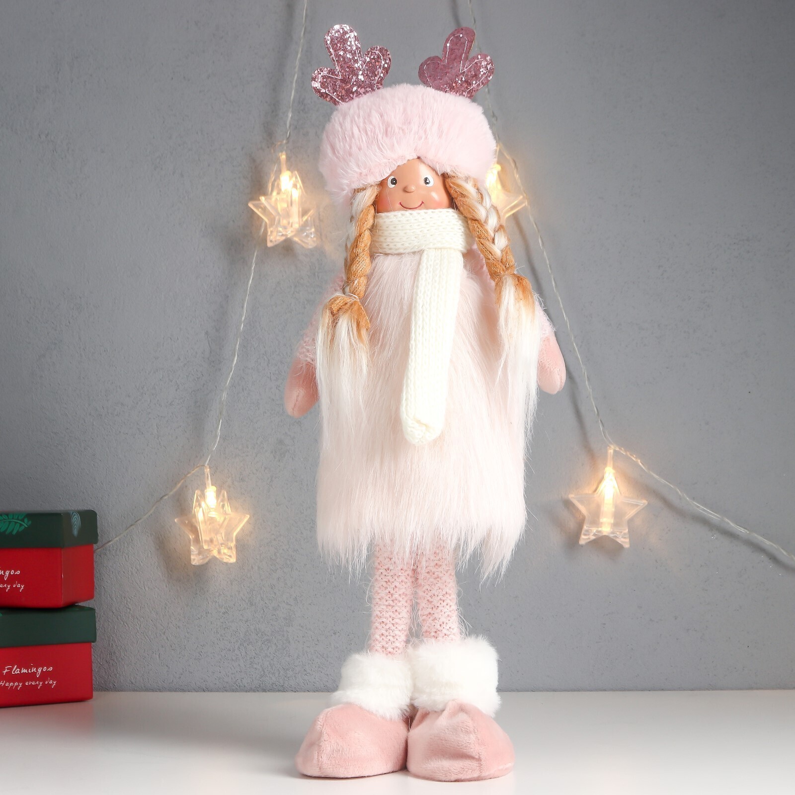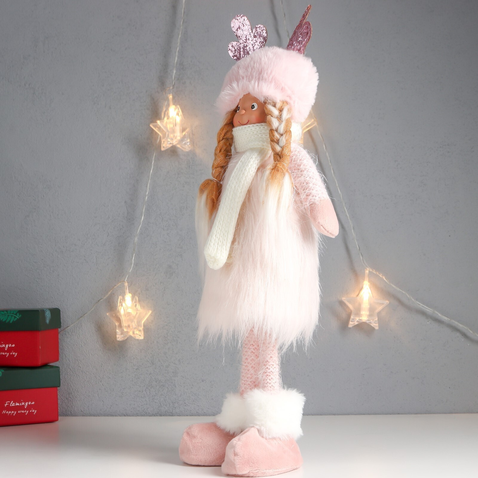Кукла интерьерная "Девочка в шапке с рожками, розовый наряд" 41х16х9 см 7575303
