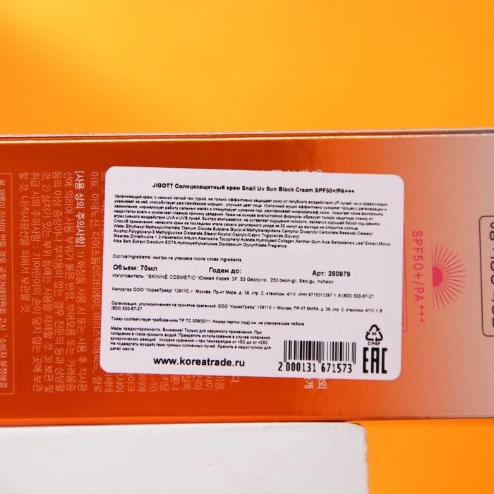 Солнцезащитный крем "JIGOTT" с улиточным муцином SPF50, 70 мл